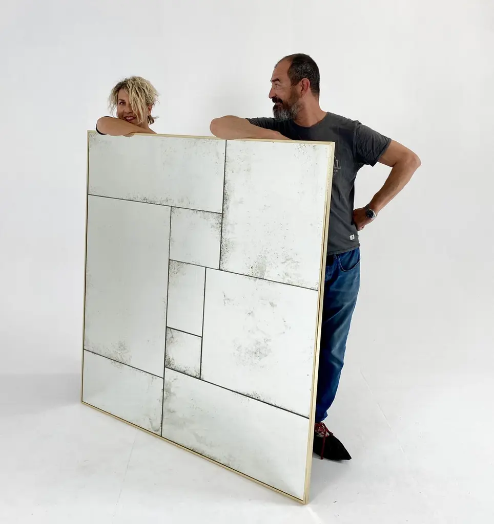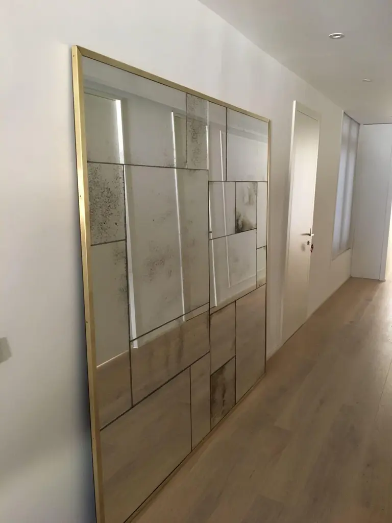 Industrial Custom-Made Artisanal Mirror Hand-Aged Authentic Brass Finish Frame SYou can find custom-made mirrors with brass finish frames that are hand-aged in an artisanal way. Each of our mirrors is unique and exclusive, as they are carefully crafted by expert craftsmen who use traditional techniques to achieve an aged and authentic finish. These mirrors are stunningly beautiful, as each one is unique and cannot be compared to commercially-made ones that repeat patterns which are visible to experienced eyes.Moreover, we offer a wide variety of styles and designs so you can find the perfect mirror for your dining room, powder room, walk-in-closet, foyer, bedroom, fireplace, lounge, store, or restaurant. Whether you're looking for a mirror with a rustic, industrial, or shabby chic vibe, we have options that cater to all your needs.Our mirrors are made of high-quality materials, providing excellent clarity and a shaded reflection. Additionally, as they are custom-made, they can be adapted to any space and measurement in your home or office.Don't wait any longer to add a touch of elegance and sophistication to your decor. Purchase our artisan custom-made, hand-aged mirror with a brass finish frame now and make your space unique and special. Choose from custom-made mirrors, hand-aged mirrors, artisanal mirrors, unique mirrors, personalized mirrors, mirrors with aged finish, and more.