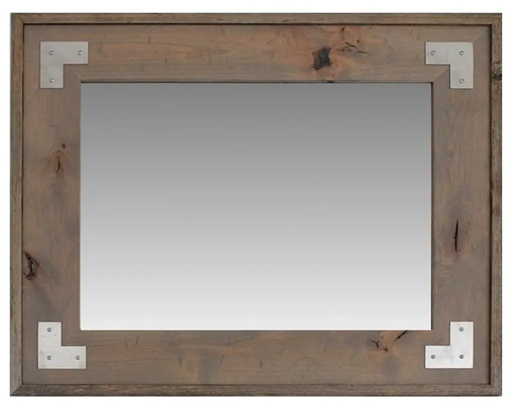 Park City Style Rustic Mirror with Stained Alder InsetThis beautifully-crafted rustic wood mirror features a natural barnwood border with a stained alderwood inset. Handmade in the USA, and available in several sizes, including custom sizes, this rustic mirror will highlight any rustic or casual decor. This mirror is great over the mantel or across from windows to enhance the light in a room. Don''t have a mantelpiece? Try hanging this frame over your favorite leather couch as a point of interest in the room. You''ll love the alder inset as it adds more depth to the mirror and increases its appeal.D-ring hanging hardware is included with each mirror allowing you to decide whether to hang it horizontally or vertically.Custom orders for our rustic barnwood mirrors are available. Contact us at 888-653-22576 for pricing on a custom size mirror.Mirror sizes are listed according to exterior dimensionsFrame width is 3.5 inches, depth is .75 inchNatural alder wood insetShips Via FedEx in 2 - 3 weeksHandcrafted in USAPLEASE NOTE: Because of the possible variances in computer monitor colors and reclaimed wood colors, your completed frame may vary slightly in color and texture from the one you see pictured here.
