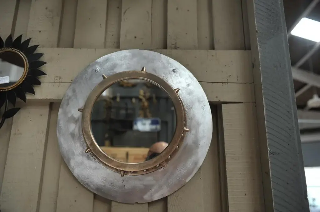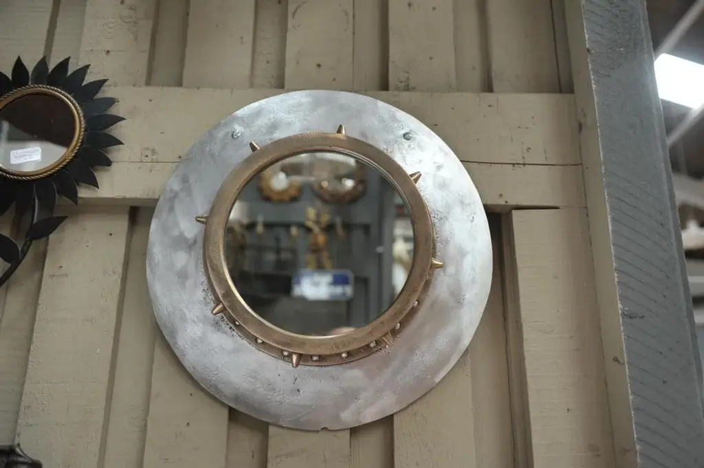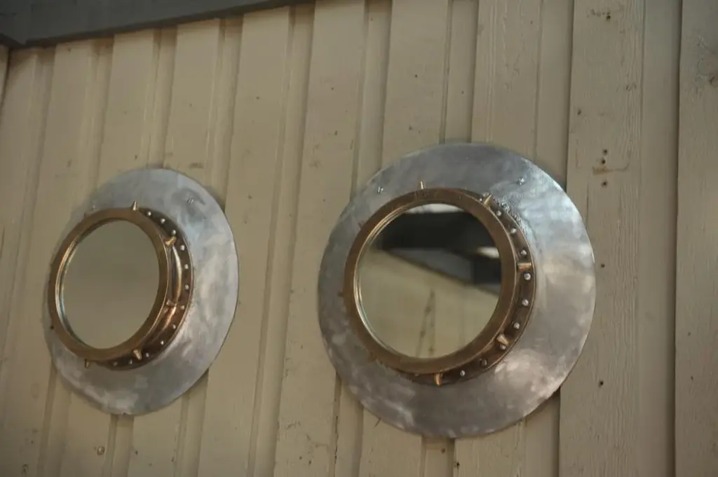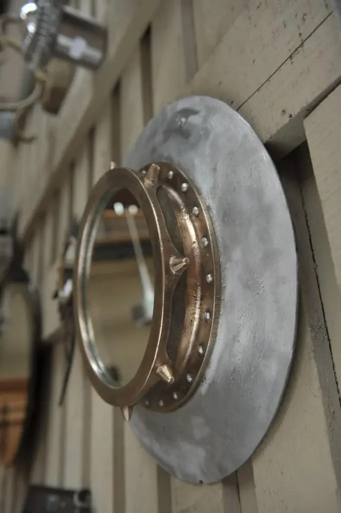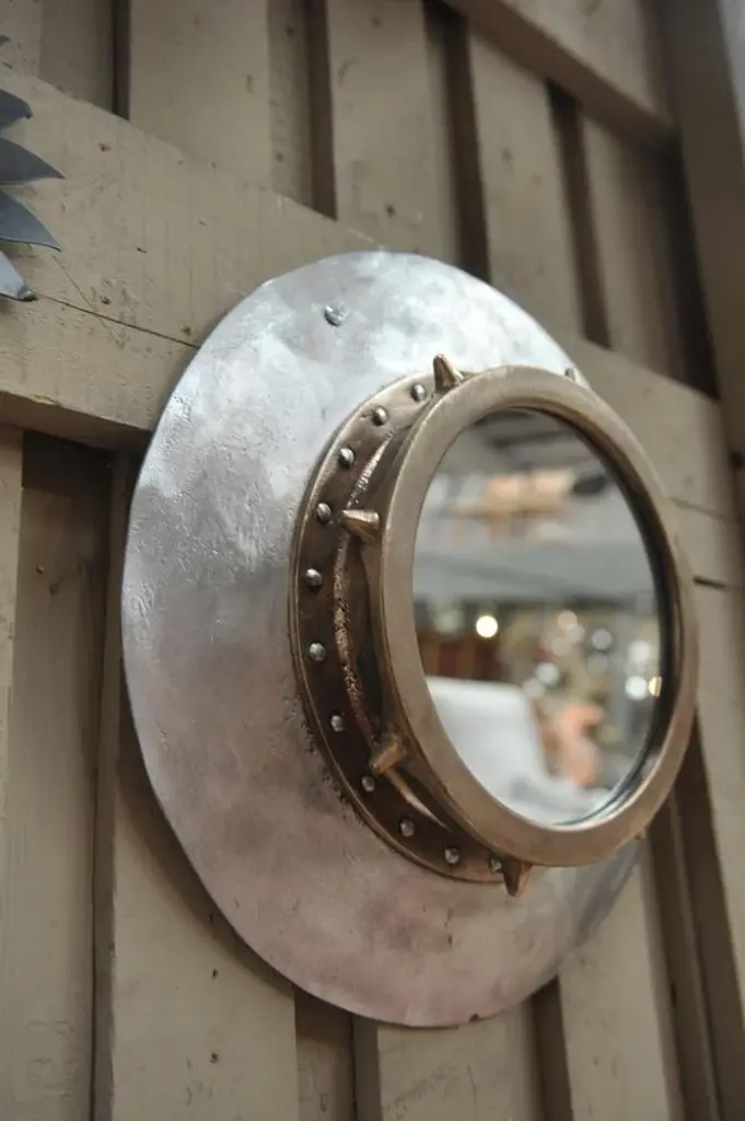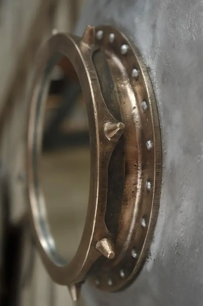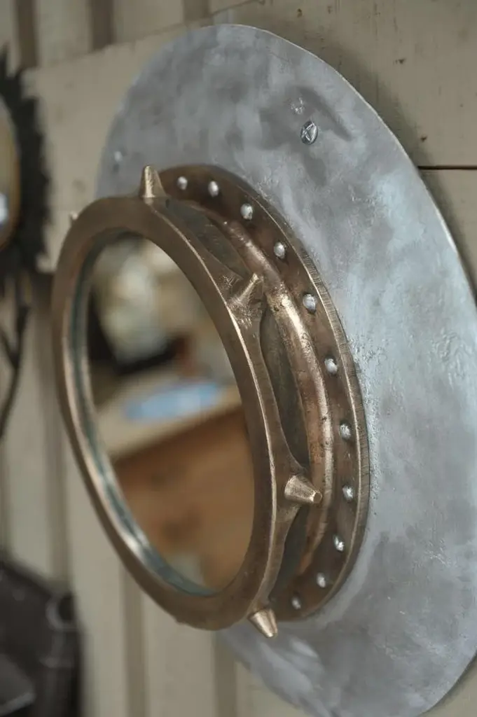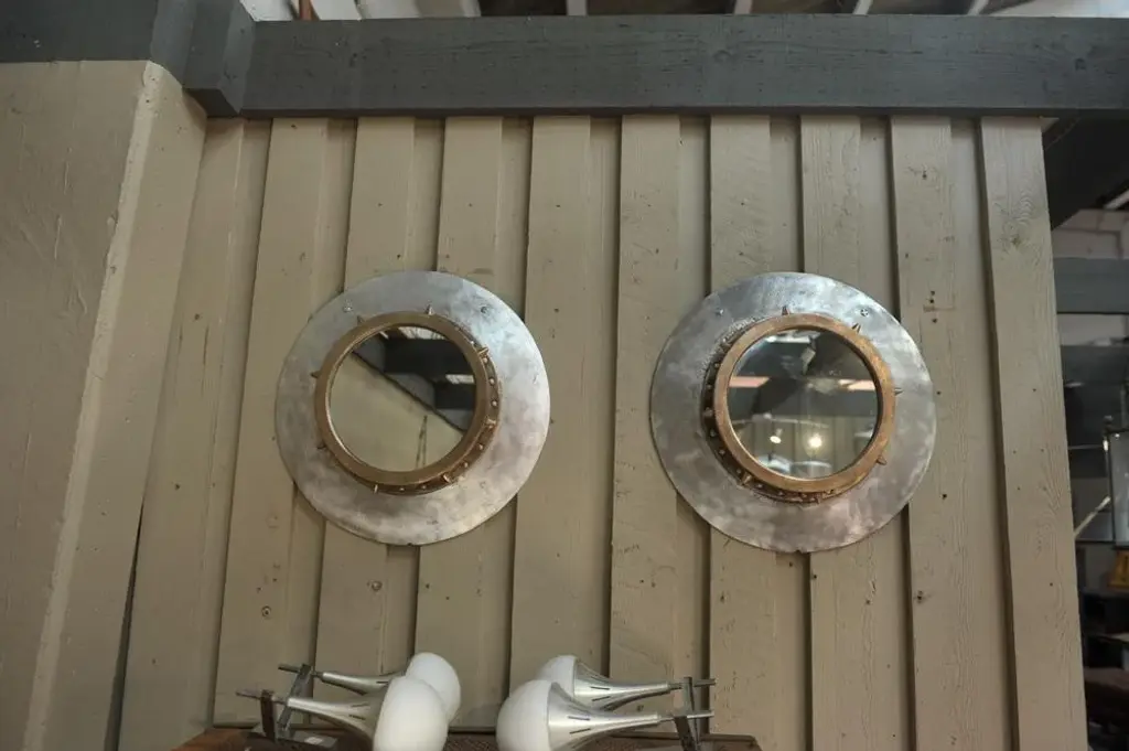 Old portholes from a brewery in the north of France in riveted bronze and aluminum, transformed into an industrial mirror, 1920
