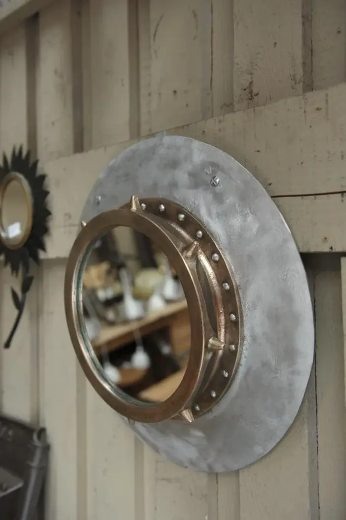 Industrial Riveted Bronze And Aluminum Porthole Mirror, 1920s