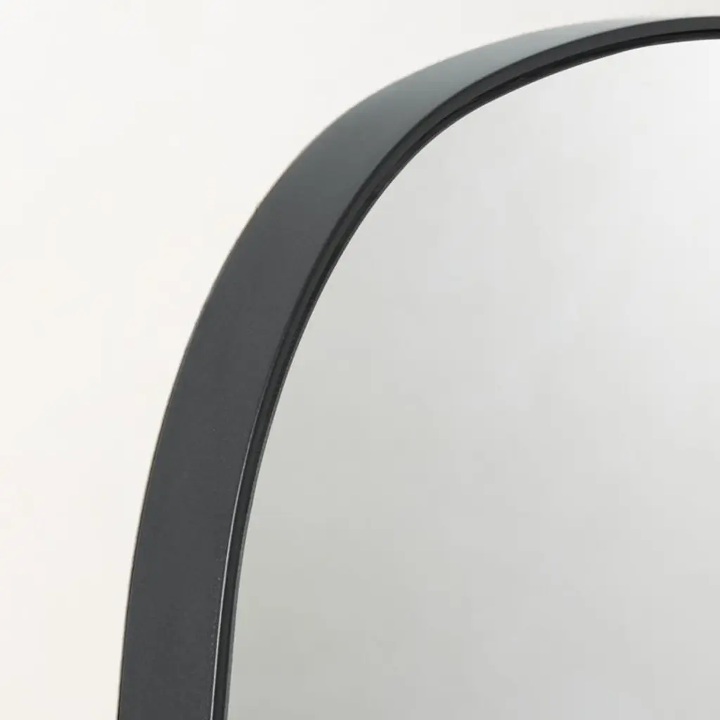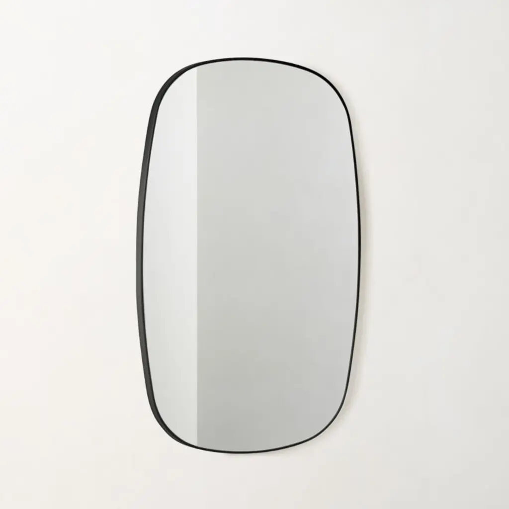 Looking glass framed thin, trim and exact in pure extruded aluminum with black finish. Handmade oblong frame resists corrosion so mirror is perfect in the bath. Mounting hardware is included. CB2 exclusive.