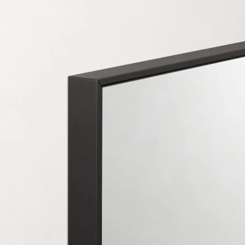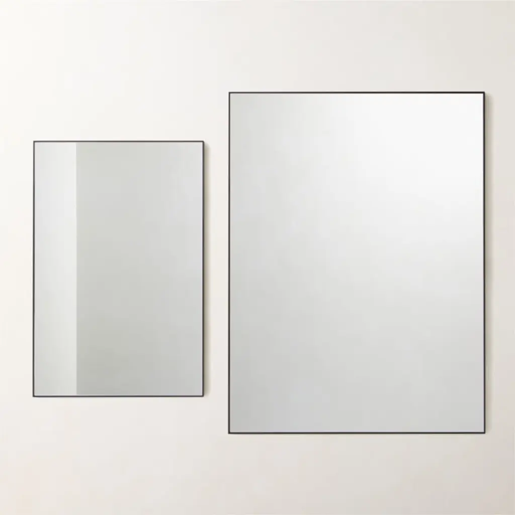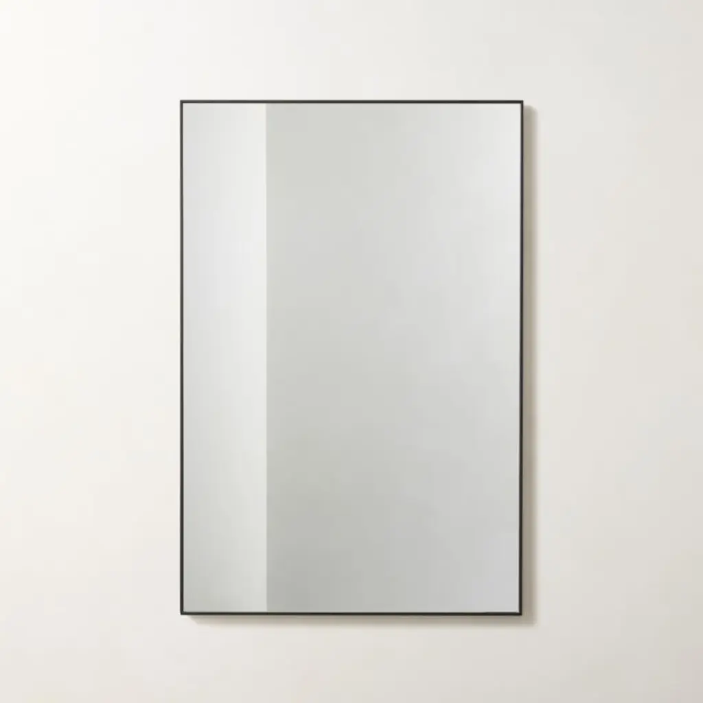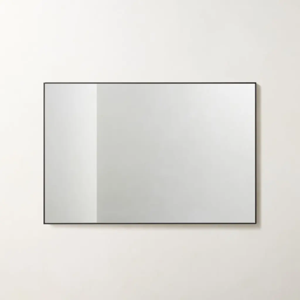 Bordered by a black frame, modern wall mirror has a sleek finish that can live easily in the bathroom, office or bedroom. CB2 exclusive.