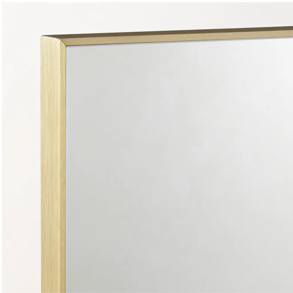 Bordered by a brushed brass-plated frame, modern wall mirror has a sleek finish that can live easily in the bathroom, office or bedroom. CB2 exclusive.