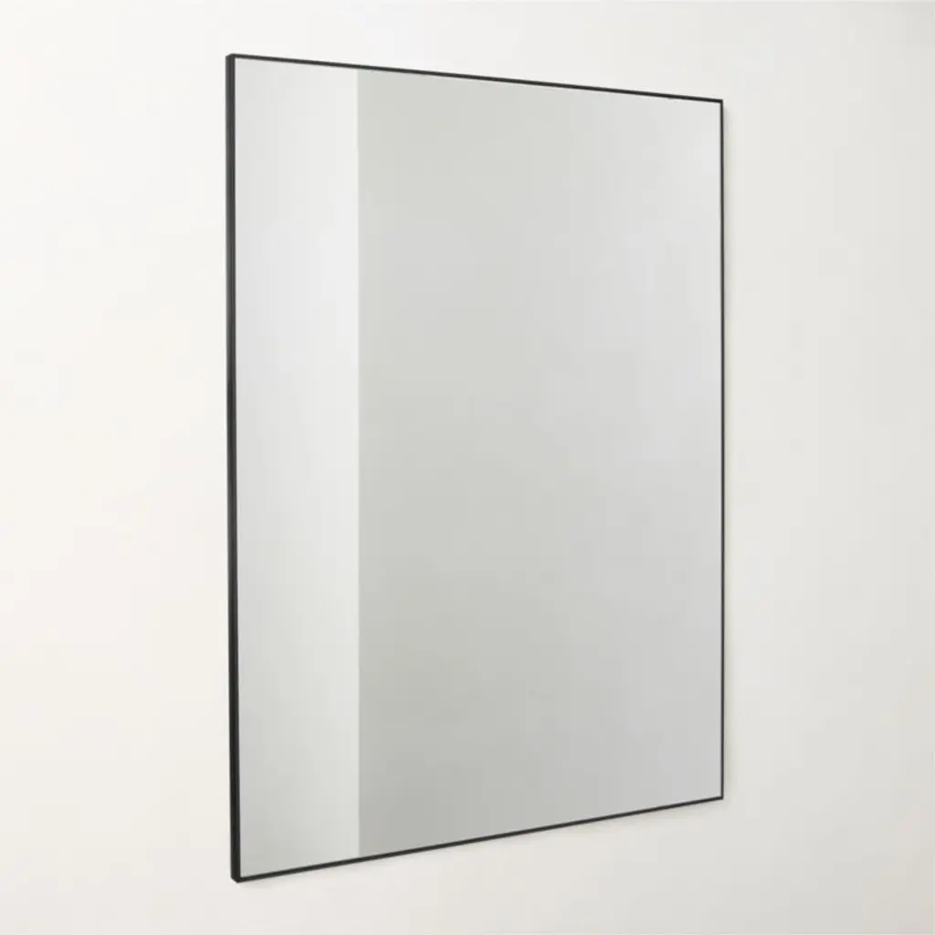 Bordered by a black frame, modern wall mirror has a sleek finish that can live easily in the bathroom, office or bedroom. CB2 exclusive.