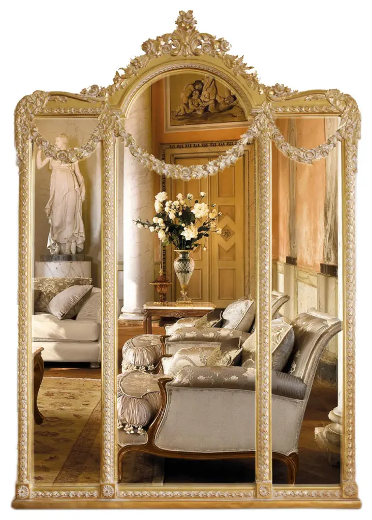 Indulge in opulence and elevate your space with our breathtaking trifold arch mirror, a timeless masterpiece that will captivate your senses and transform any room into a luxurious haven. Crafted with precision and a touch of splendor, this magnificent mirror embodies the very essence of elegance and sophistication.Unparalleled craftsmanship:Meticulously designed with an arching silhouette, our trifold arch mirror showcases flawless artistry that will leave you in awe. The striking combination of the majestic gold frame and the gentle curves creates a harmonious symphony of beauty and refinement.Timeless appeal:Inspired by the grandeur of bygone eras, this mirror captures the essence of classical architecture while seamlessly blending with modern aesthetics. Its timeless appeal ensures that it will remain a cherished piece for generations to come, making it a true heirloom to pass down through the ages.Reflect light and enhance space:Harness the power of light with our trifold arch mirror, which acts as a radiant centerpiece, reflecting natural light and enhancing the brightness of any room. The illusion of space it creates is unparalleled, making even the smallest areas feel open and welcoming.Versatile placement:Whether you envision it gracing the entryway, becoming the focal point of your living room, or adding a touch of extravagance to your bedroom, our trifold arch mirror effortlessly adapts to any setting. Its timeless design and versatility make it an ideal complement to any interior style, be it classic, contemporary, or eclectic.A statement of elegance:Elevate your living space to new heights of sophistication with the allure of gold and the grace of our trifold arch mirror. Become the envy of all who enter your home as you adorn your walls with this striking work of art.Don''t miss this opportunity to add a touch of glamour and luxury to your life. Embrace the allure of the trifold arch mirror, and bask in the endless compliments it will draw. Order now and experience the embodiment of timeless elegance for yourself!