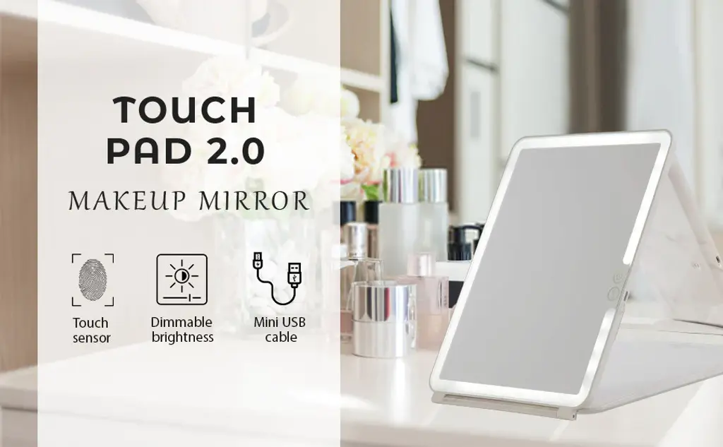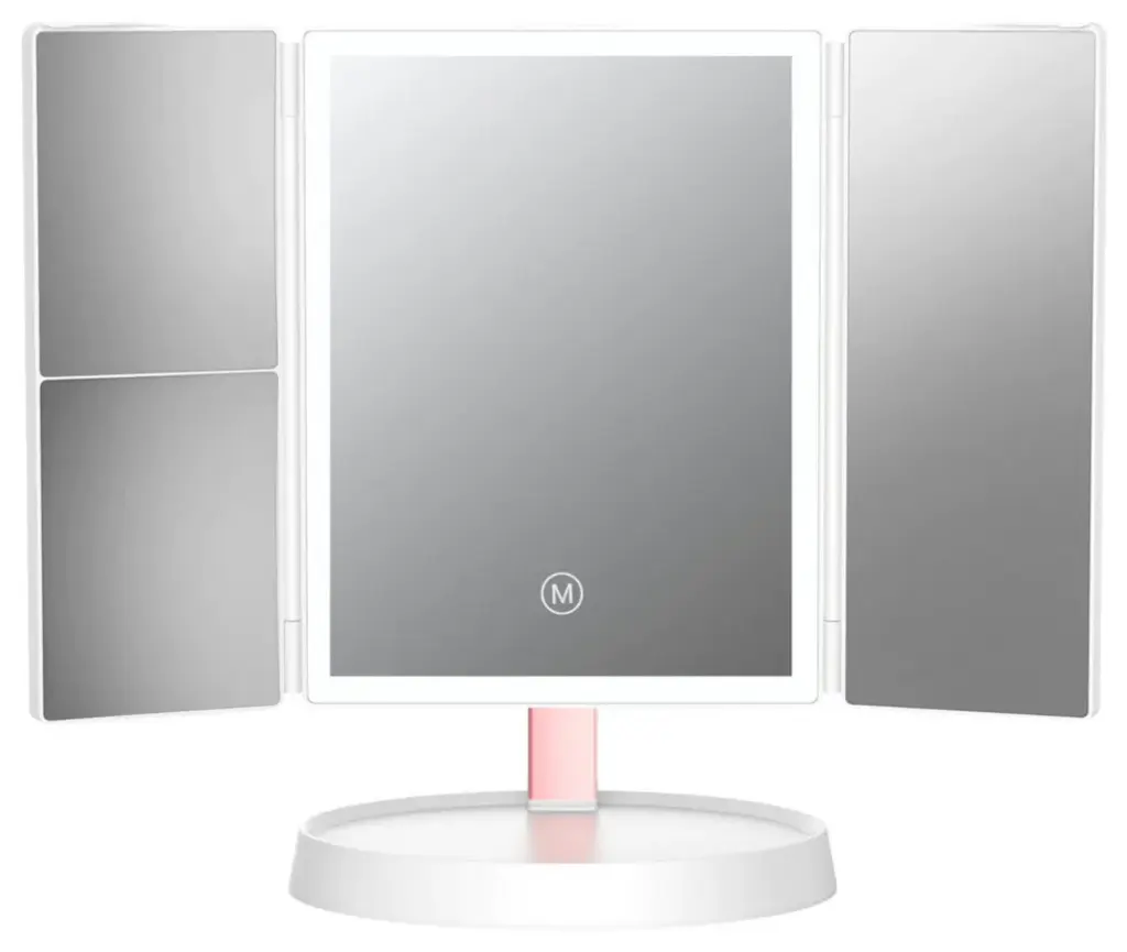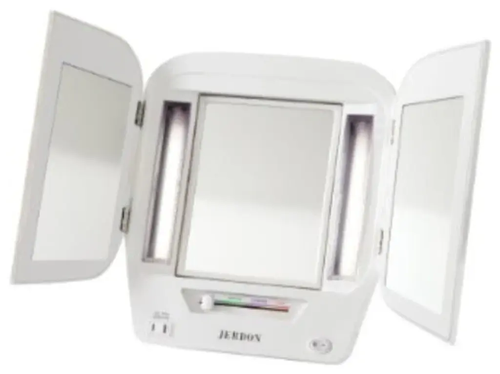 Impressions Vanity Get ready with ease with the Infinity Trifold LED makeup mirror with magnification. During your beauty routine place your favorite gloss, lashes, or earrings at the base of the mirror making you are getting glam process a whole lot easier. This innovative mirror comes with a 1x, 2x, and 3x side panel mirror. This rechargeable makeup mirror is decorated with an LED light that surrounds the frame which provides the perfect light for ideal makeup. Also, it has included 3 panels to adjust for viewing any angle. Mirrored panels are adjustable and LED lighting surrounds the frame of the mirror providing even lighting.Features:2X 3X MAGNIFICATION: This contemporary vanity mirror is built with a 2X 3X magnification side panel. Perfect for lipstick, eyelashes, eyeliner, and mascara. Fully tilted mirror base for your perfect makeup angleAESTHETIC STYLE: Give your room decor a modern touch with this lavish tri fold mirror with lights. A stylish aluminum frame with extra storage will add a new dimension to your beautiful home decor and make your vanity corner glowMULTIPLE FUNCTION: Our Impressions Vanity magnifying mirror with lights is equipped with versatility. These eye friendly LEDs are customizable for your personal comfort. Sensitive touch panel for necessary brightness for your party makeup, or daily skincare routineIDEAL GIFT: Make every day special with this vanity mirror for desks and lights. This makeup vanity can be a posh presentation for your loved ones