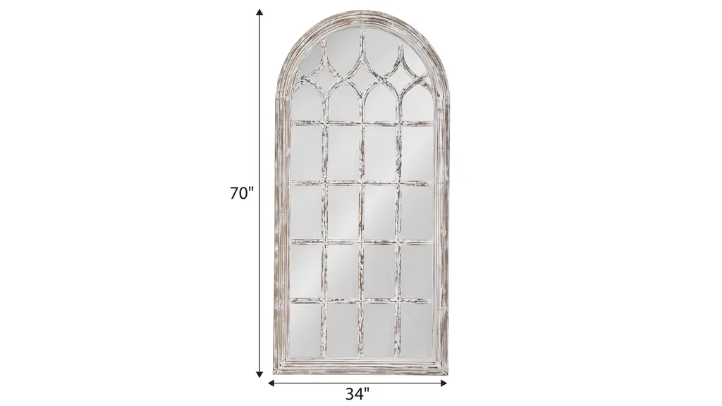 Add depth, dimensionality, and style to any room No installation required! The Ingram Leaner Mirror has a distressed white, arched top, and windowpane detail that make it perfect for a farmhouse style setting.