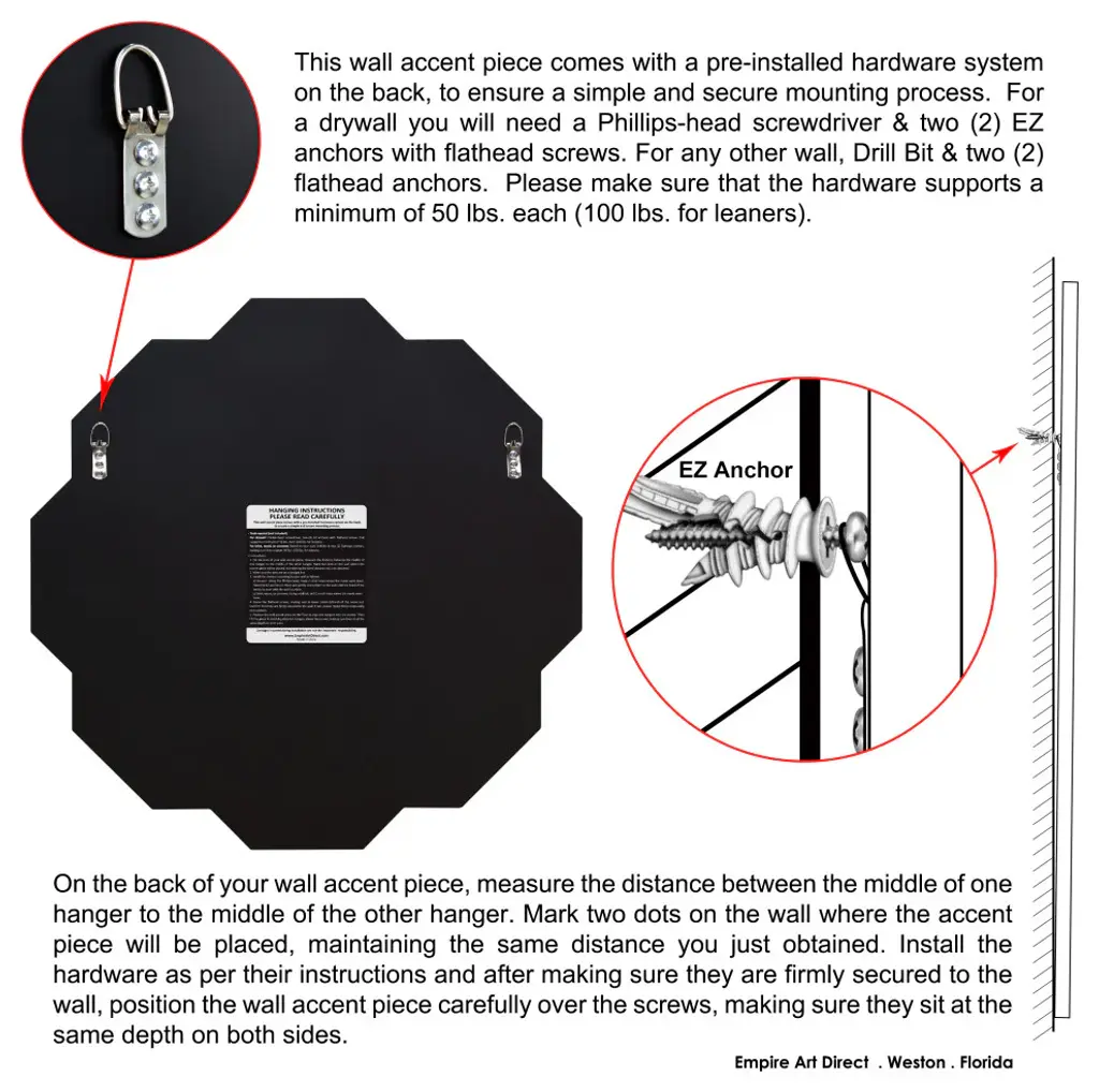 Behold a mirror, not just a reflection but a love story etched in every curve and line. This round masterpiece, measuring 24 inches by 24 inches, is a testament to timeless elegance, a window to a world where romance and art intertwine. At its heart lies a 1-inch beveled mirror, an exquisite reflection that captures not only your image but the depth of your affection. Gazing into it is like locking eyes with your beloved, an intimate connection that speaks to your heart. The mirror frame, adorned in a matte black finish, adds an air of mystery and sophistication. Yet, what truly sets this mirror apart is its frame, a breathtaking work of art composed of beveled mirrors that intertwine like two laces in a lover''s embrace. For your convenience, this mirror comes with two pre-installed D-Rings, offering you a hassle-free installation process. This mirror is more than a reflection; it''s a testament to love''s enduring beauty, a fusion of art and emotion, and a statement of timeless elegance. It mirrors not only your image but the intertwining of your hearts, always and forever, like the eternal dance of love.