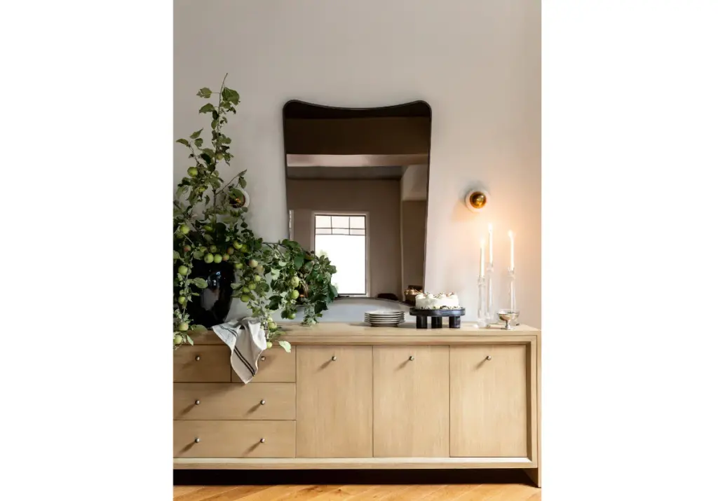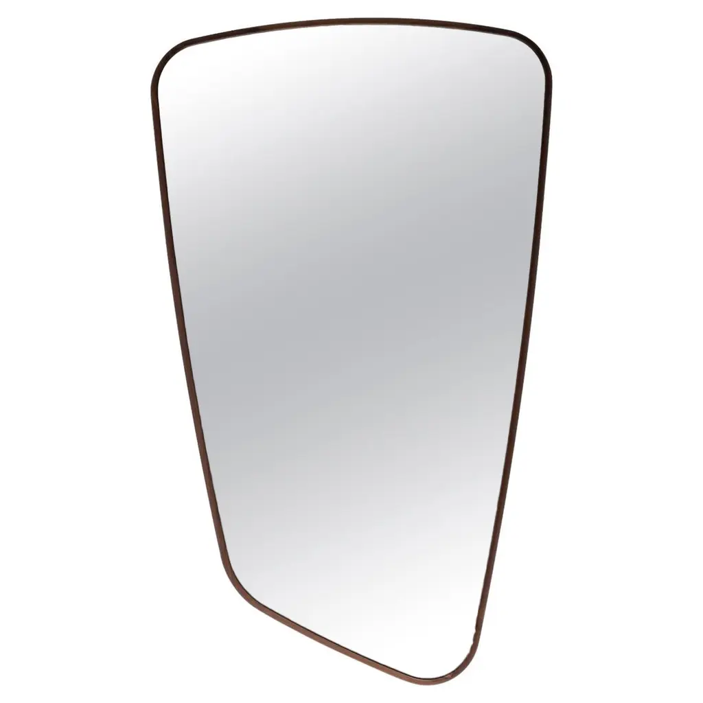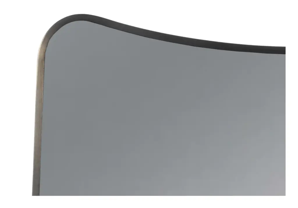 Moody and sophisticated, the Iris Grand Mirror showcases a warm gray/brown mirror complimented by a darkened brass frame. Its versatile design lends an organic, curved look, elevating entries and hallways.