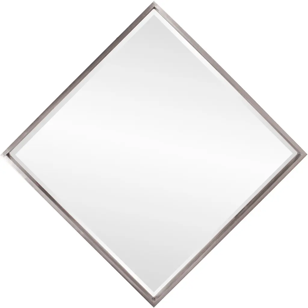 Isa is a simple piece but full of sleek, sophisticated style. It features a deep, square wood frame that is finished in a bright nickel. The mirrored glass is set back in the frame giving it a shadowbox effect. It is a perfect focal point for an entryway, bathroom, bedroom or any room in your home. D-rings are affixed to the back of the mirror so it is ready to hang right out of the box! The mirrored glass on this piece has a bevel adding to its beauty and style. The Isa Mirror can be hung as a square or diamond.