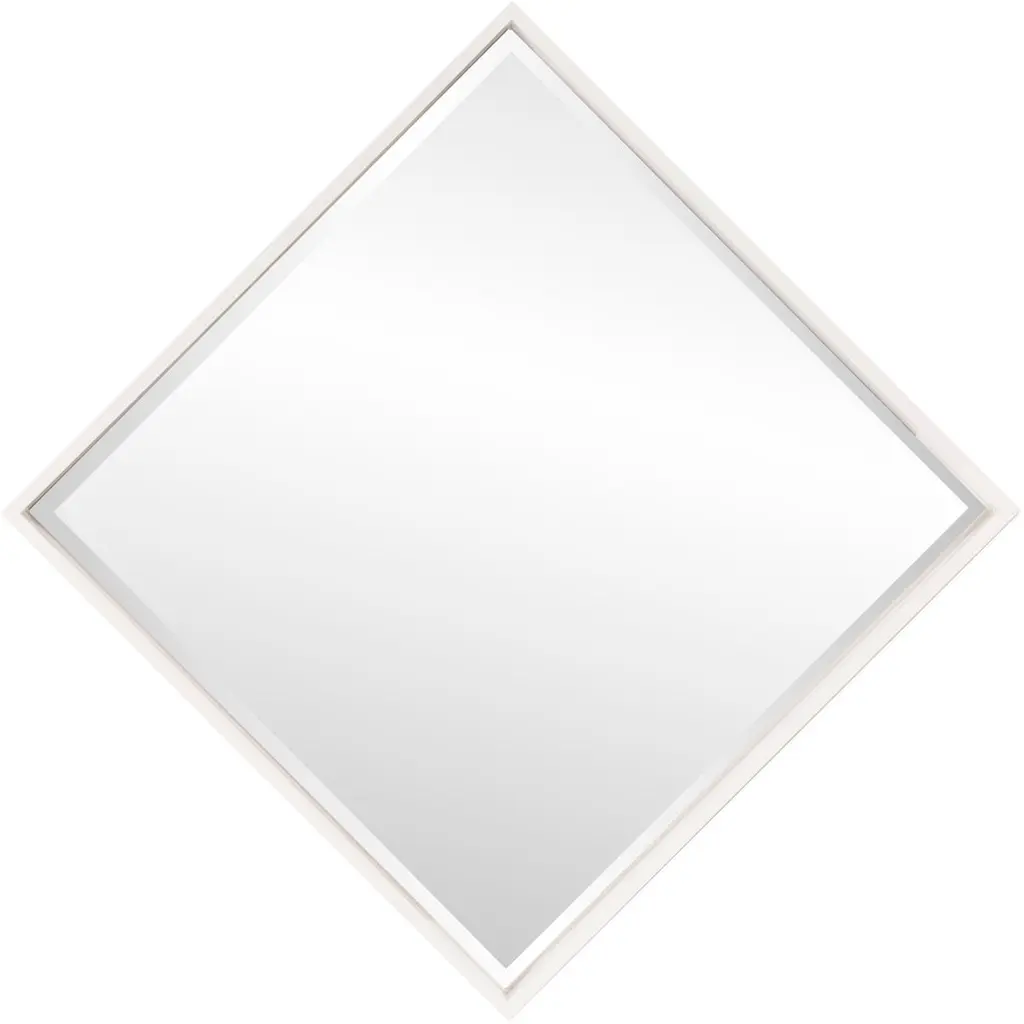 Isa is a simple piece but full of sleek, sophisticated style. It features a deep, square wood frame that is finished in a glossy white lacquer. The mirrored glass is set back in the frame giving it a shadowbox effect. It is a perfect focal point for an entryway, bathroom, bedroom or any room in your home. D-rings are affixed to the back of the mirror so it is ready to hang right out of the box! The mirrored glass on this piece has a bevel adding to its beauty and style. The Isa Mirror can be hung as a square or diamond.