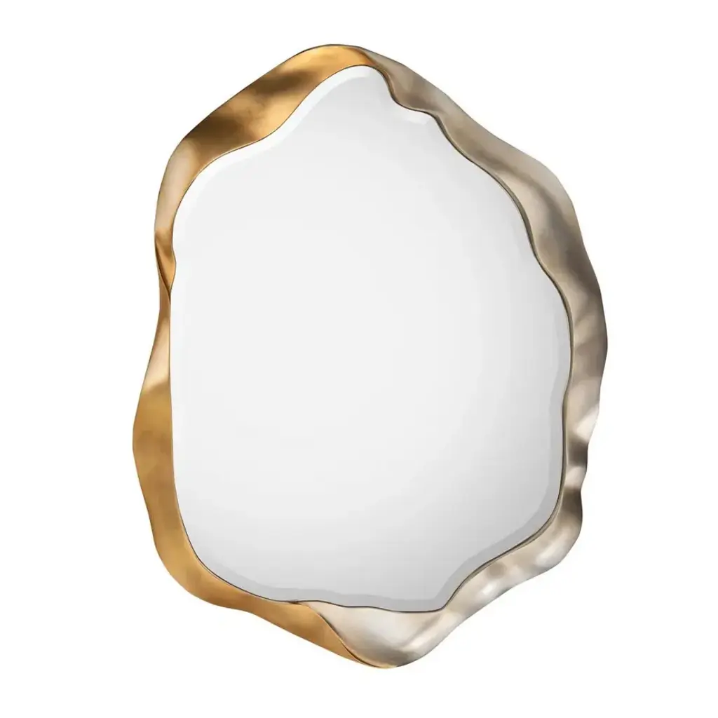 The Isadora Mirror is organically shaped with a captivating gold-leaf border, a harmonious blend of nature-inspired aesthetics and luxurious elegance. This mirror transcends the ordinary, offering a unique and enchanting focal point that seamlessly complements any space it graces.