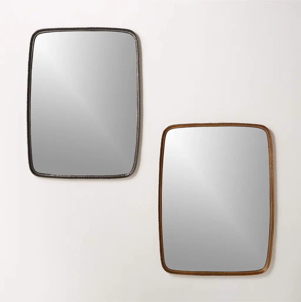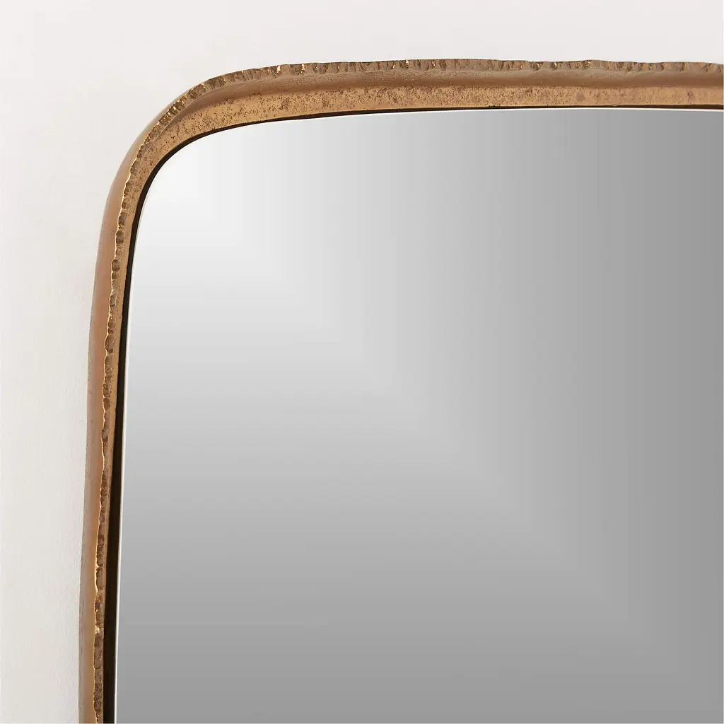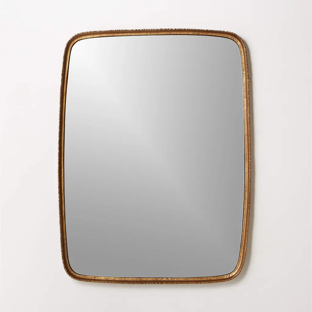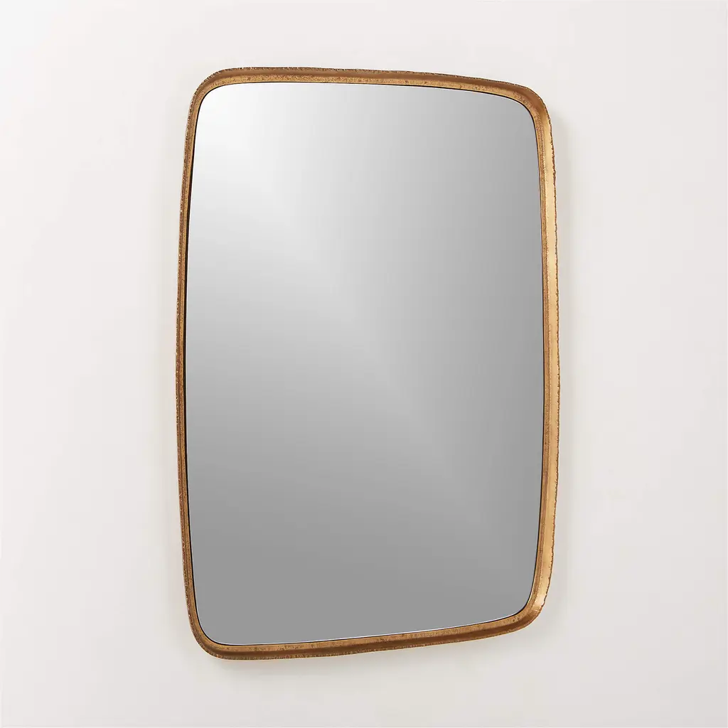 Handcrafted from sand-cast aluminum, brass-finished mirror adds definition with softly rounded corners and organic edges. CB2 exclusive. Due to the nature of the material, brass patina will vary in color and darken over time.