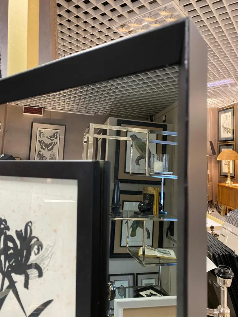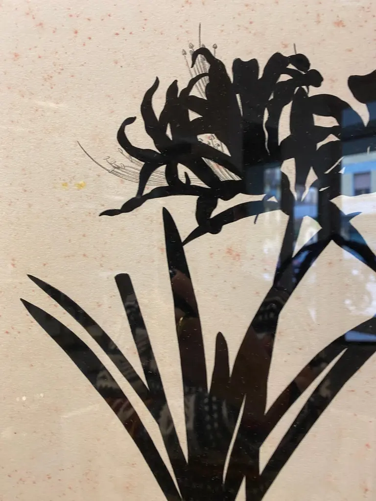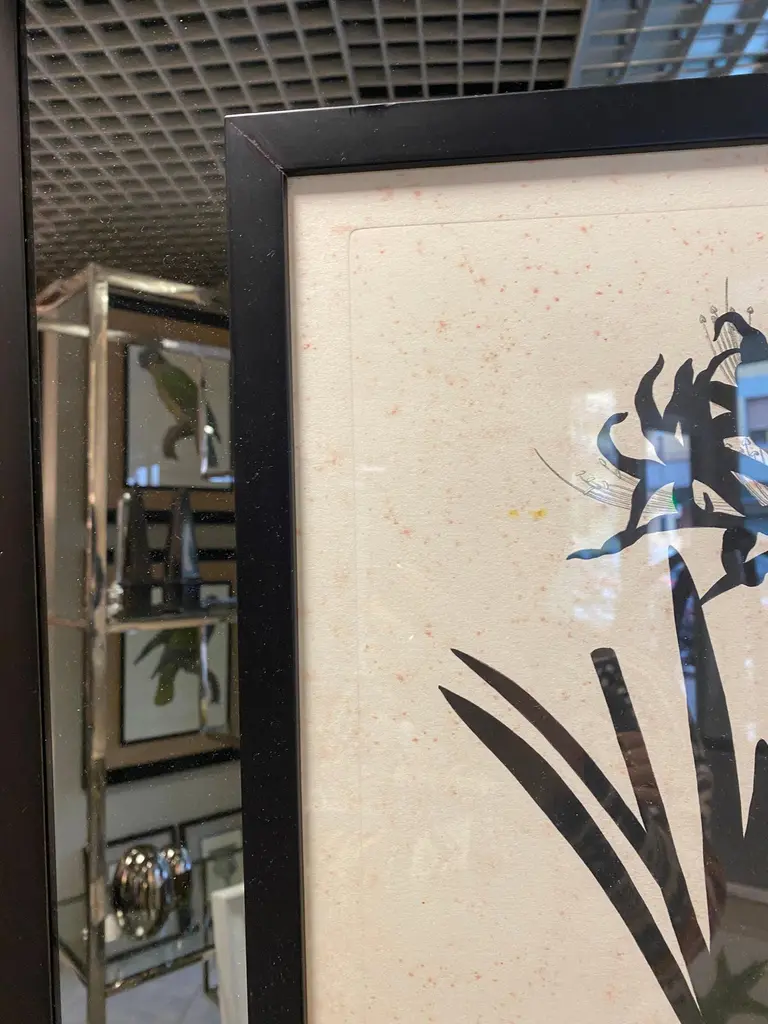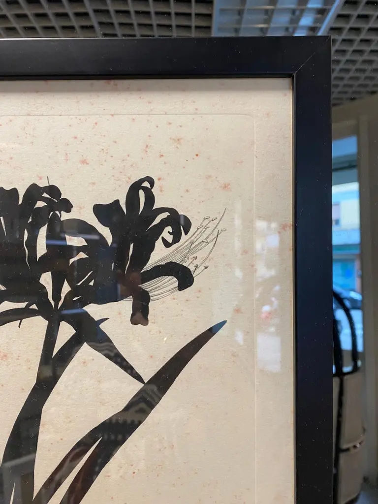 Elegant hand-watercoloured black silhouette print representing "Amaryllis Aurea", printed on aged paper and accompanied by a beautiful frame made of mirrors and black-painted wood.This botanical style print is available in 3 different natural representations to create a bright and joyful composition. In series with:- Tulipe de Jardins- Amaryllis Aurea- Lilium SuperbumA silhouette is the image of a person, animal, object or scene represented as a solid shape of a single colour, usually black, with its edges matching the outline of the subject. The interior of a silhouette is featureless, and the silhouette is usually presented on a light background, usually white, or none at all. The silhouette differs from an outline, which depicts the edge of an object in a linear form, while a silhouette appears as a solid shape. Silhouette images may be created in any visual artistic medium, but were first used to describe pieces of cut paper, which were then stuck to a backing in a contrasting colour, and often framed.Cutting portraits, generally in profile, from black card became popular in the mid-18th century, though the term silhouette was seldom used until the early decades of the 19th century, and the tradition has continued under this name into the 21st century.With an experience of over 40 years, Artecornici design creates high-quality handmade frames using precious woods and working various types of high-quality finishes, lacquers and ageing, offering a vast choice of models.Each print is an artisanal Florentine product, reproducing images of the European 18th and 19th centuries with the same printing techniques (engraving with a star press), the golden age of prints, which are then finished and watercolored exclusively by handThe richness of our work lies in the ability to make our customers' requests our own, creating products with personalized, unique, and precious creations, renewing our collections year after year.