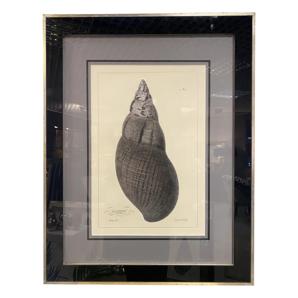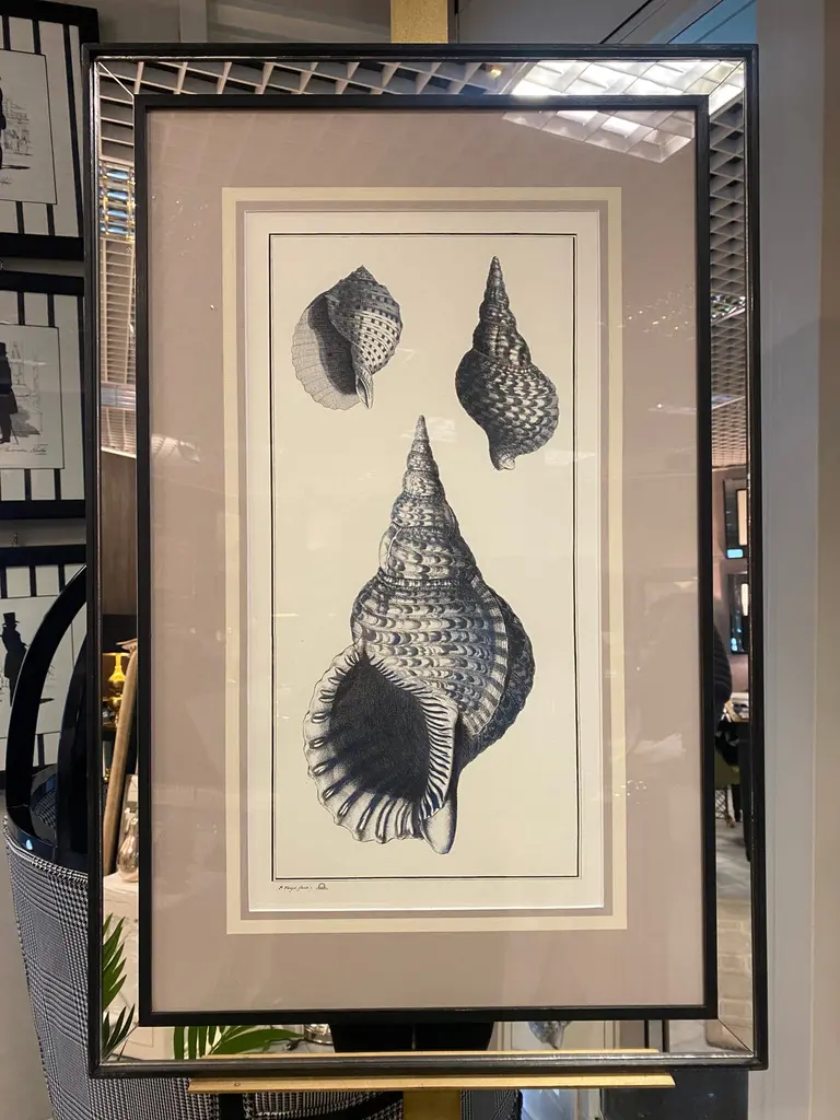 Elegant hand-watercoloured shell printed on aged paper and accompanied by a beautiful frame made of black mirrors and silver-painted wood.This botanical style print is available in 2 different natural representations to create a bright and joyful composition. Each print is an artisanal Florentine product, reproducing images of the European 18th and 19th centuries with the same printing techniques (engraving with a star press), the golden age of prints, which are then finished and watercolored exclusively by hand.The richness of our work lies in the ability to make our customers' requests our own, creating products with personalized, unique, and precious creations, renewing our collections year after year.All the prints are completely hand-coloured by our skilled craftsmen in Florence, Italy.With an experience of over 40 years, Artecornici design creates high-quality handmade frames using precious woods and working various types of high-quality finishes, lacquers and ageing, offering a vast choice of models.Each print is an artisanal Florentine product, reproducing images of the European 18th and 19th centuries with the same printing techniques (engraving with a star press), the golden age of prints, which are then finished and watercoloured exclusively by handThe richness of our work lies in the ability to make our customers' requests our own, creating products with personalized, unique, and precious creations, renewing our collections year after year.Printed manually on 100% cotton engraving paper in Florence Italy.Each print is entirely painted by hand with water colors and tempera.It is a furnishing accessory that enhances the environment and adapts to many decorative styles.Artecornici design produces hand colored art prints, artisan frames, lightings, decorative accessories and furniture. All our products are designed and produced in Florence by Italian master craftsmen.