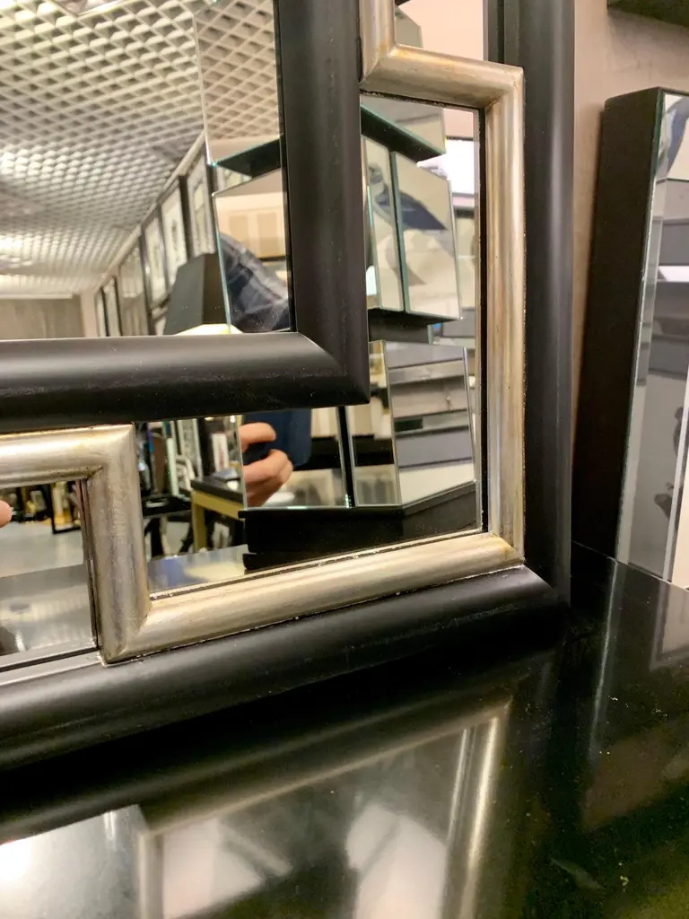 Italian Contemporary Handcrafted Mirror With Black And Silver Frame