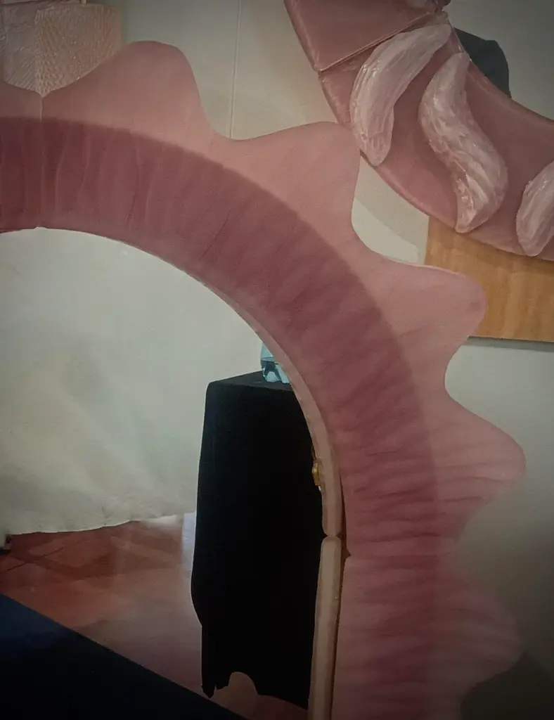 Italian Murano Pink Art Glass And Brass Console / Wall Mirror, 2000