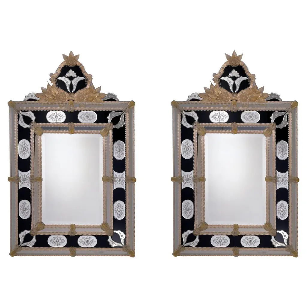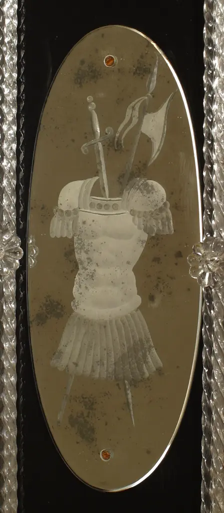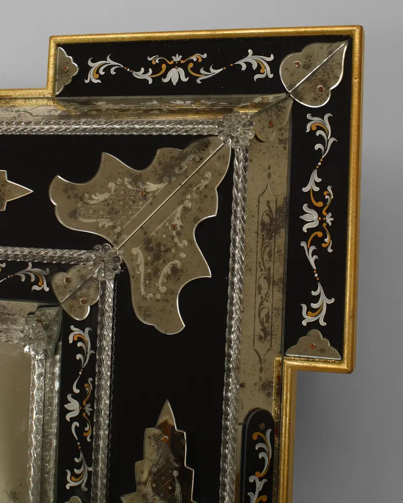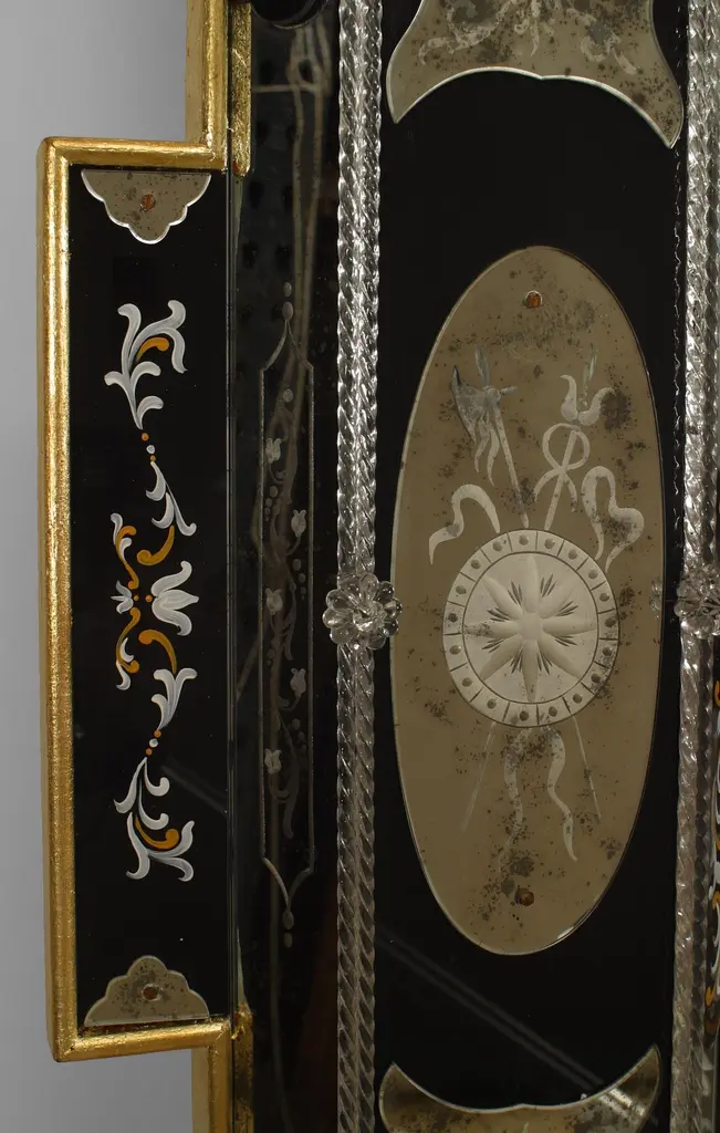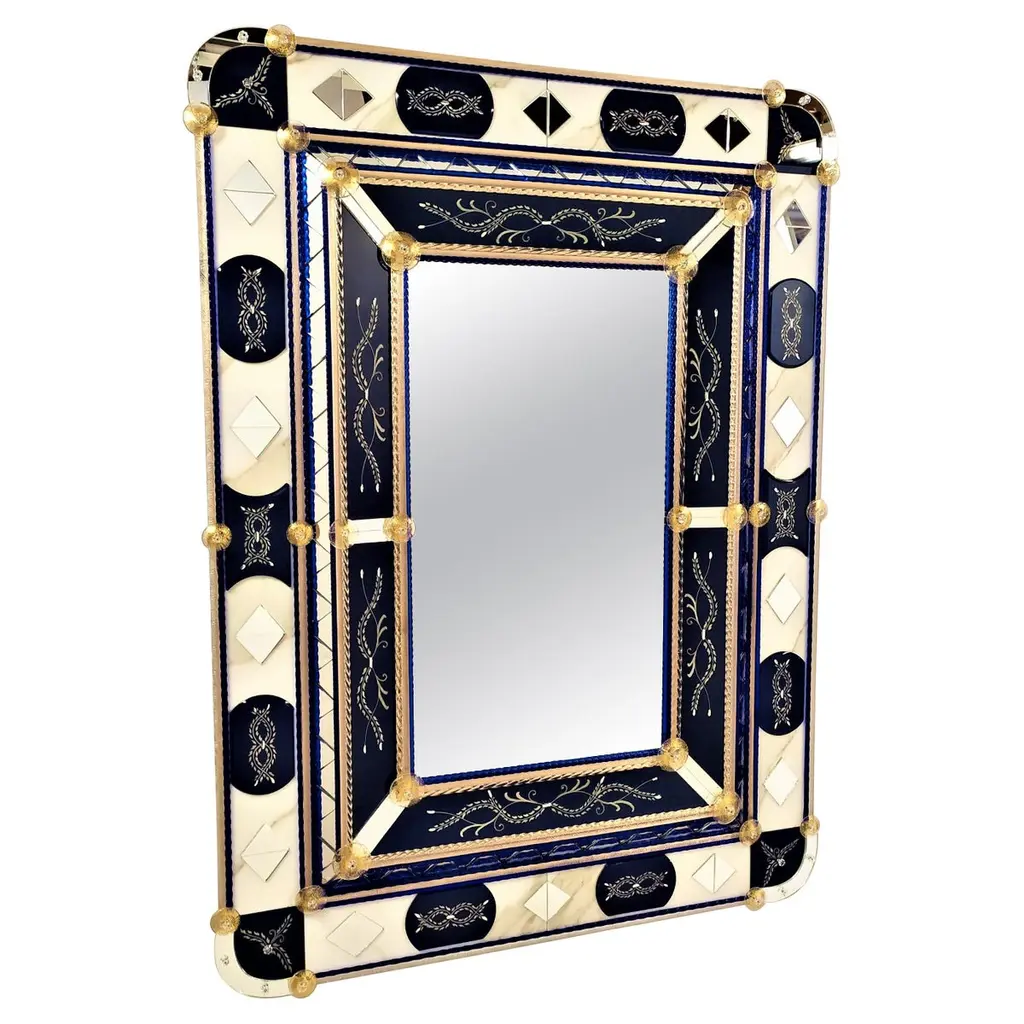 Italian Venetian Neoclassic Etched Blue Glass Wall Mirror