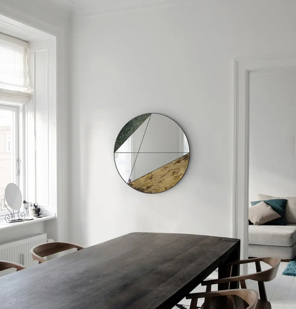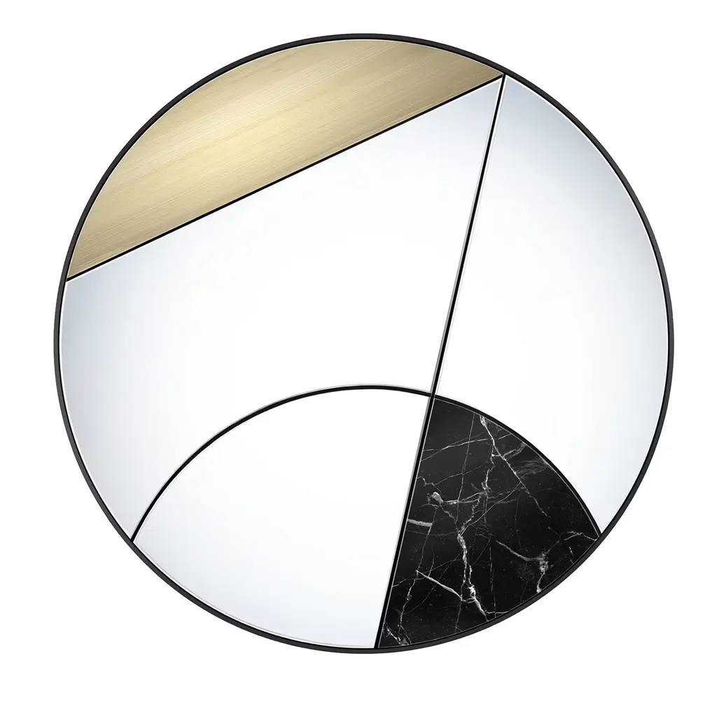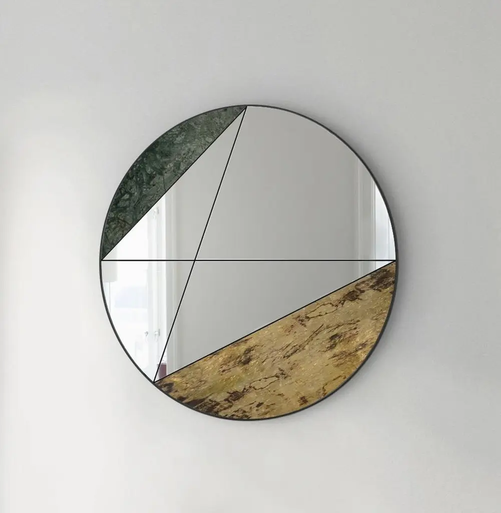 Itinera Clepsydra III 120 Wall Mirror by Atlas ProjectDimensions: D 3/5 x Ø 120 cm. Materials: Black powder painted iron, Green Guatemala marble, antique brass, mirror, and wood.Available in different finishes and sizes. Please contact us.CLEPSYDRAAs a journey through the time, where lives can cross or never meet, the lines run along the surface of the Clepsydra mirrors, approaching the most diverse materials while preserving their uniqueness.Entirely crafted by hand, these amazing mirrors were born by the harmonious synthesis of Italian taste creativity and deep technical knowledge of the materials. Geometry and colors combine to create a stunning collection of must-have pieces.Our ProjectThe synergy between a thirty-year Italian craft experience and an original design, based on the need to research and develop topics up with the new aesthetic trends, gives birth to Atlasproject, an exclusive furniture collection conceived by the designer Massimiliano Giordano.Born and developed first in Copenhagen, then in Vienna and finally in Rome, the project is – as a matter of fact - a journey of contamination and encounter between the many cultures of the European Design.The production is focused on a dynamic dialogue between geometries and materials, which leads to collections of deep impact and elegance. Every piece merges essential geometric shapes with the most surprising materials, textures, and colors, as the result of a careful selection of natural materials and hand-processed metals.The Atlasproject collections are entirely made in Italy, where the tradition of artisanality is still a deep value, to ensure high-quality and long-life products.Of Neapolitan origins, Massimiliano Giordano grew up inthe family’s artistic atelier.The artisan knowledge and the design skills lead him to Atlasproject, a creative container inspired by the journey, leit motiv of his personal and professional life. In fact, the designer leaves from Naples towards Copenhagen, where he will stay for five years, and then for Vienna for five years more in the heart of the Mitteleuropean design, and finally in Rome, where he currently lives and works.The amazing connections between the encountered design souls actually represent the most significant stylistic figure of his works.