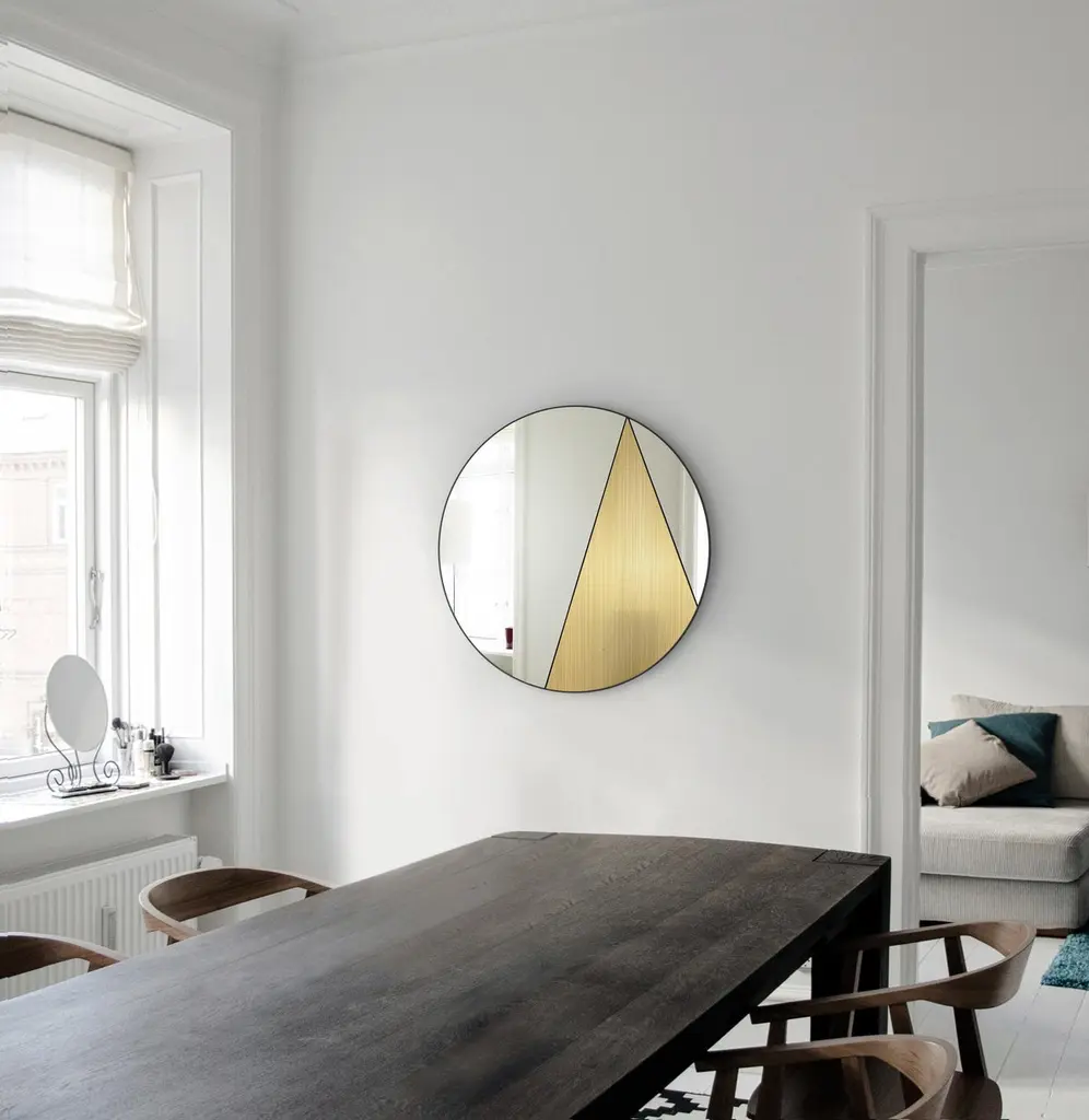 Itinera Res I D80Combining the stunning antique mirrors mirrored glasses with the warmth of hand finished natural materials, the Res mirrors will be an elegant presence in every environment. The harmonious neatness of the design, which is expressed with temperament and originality, surrounded by an explosion of impressive colors and patterns, results in unique pieces that will not go unnoticed. Itinera Res I D80 cmMirror Material inserted: Brushed BrassFrame: Iron steel black powder paintedThis item is entirely handmade in our factory using natural materials.Therefore each item is to be considered a uniques pieces: each small varation in color or trimming constitutes an extra value of the craftmade item.