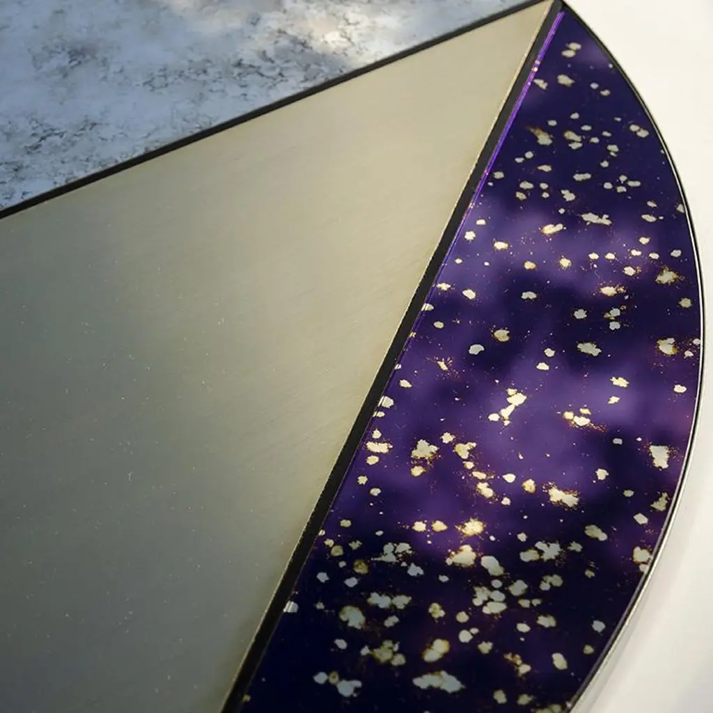 Itinera Res VenereCombining the stunning Antique Mirrors mirrored glasses with the warmth of hand finished natural materials, the Res mirrors will be an elegant presence in every environment. The harmonious neatness of the design, which is expressed with temperament and originality, surrounded by an explosion of impressive colours and patterns, results in unique pieces that will not go unnoticed. Itinera Res VenereMirror by Antique MirrorMaterial inserted : Brushed BrassFrame : Iron steel black powder paintedThis item is entirely hand made in our factory using natural materials.Therefore each item is to be considered a uniques pieces : each small varation in color or trimming constitutes an extra value of the craftmade item.