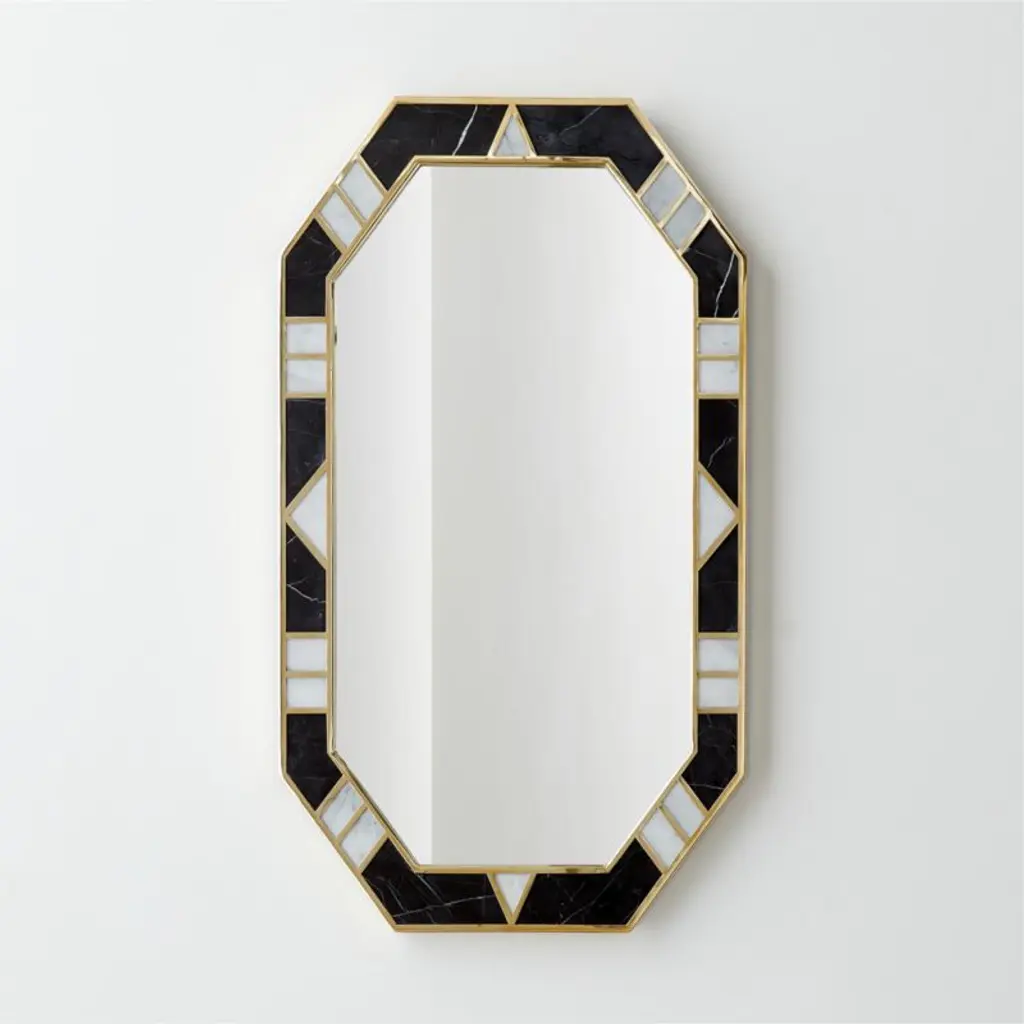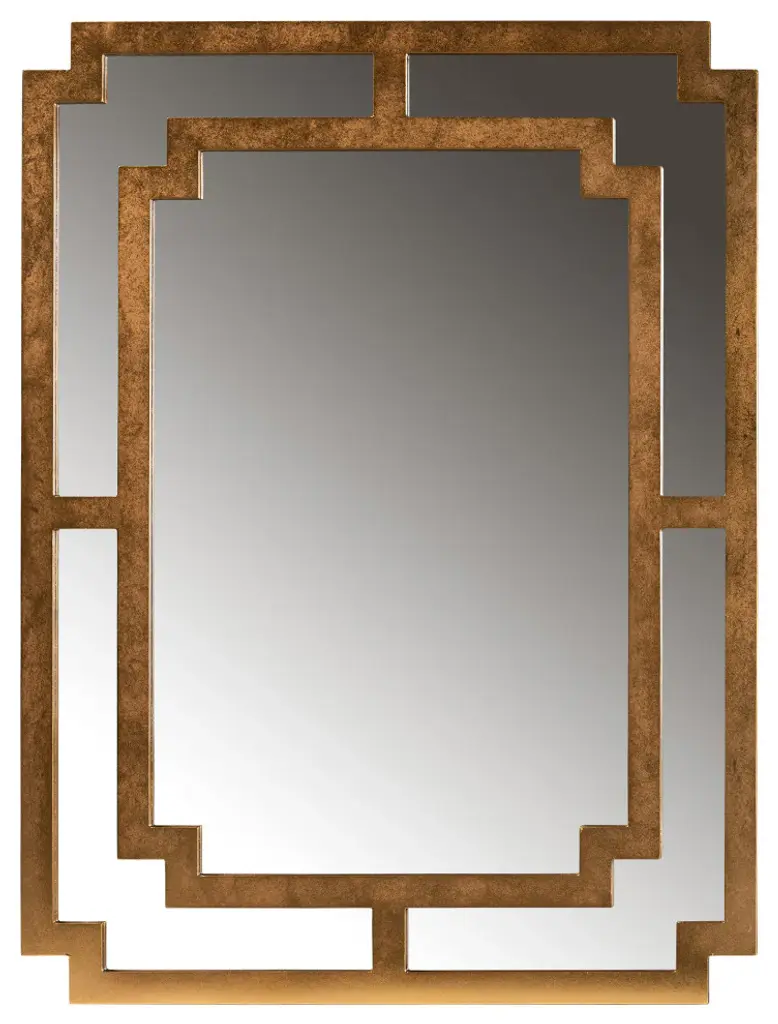This magnificent mirror, inspired by the bold elegance of art deco style, features a frame made of wood and covered with lavish gold leaf. The rectangular central element is flanked by side elements that create a stunning geometric decoration. Covered with mirrors with an antique finish, all the pieces that make this exquisite object of functional decor create a majestic effect that will enrich any room, either if placed on a mantelpiece, in an entryway, or in a bedroom.