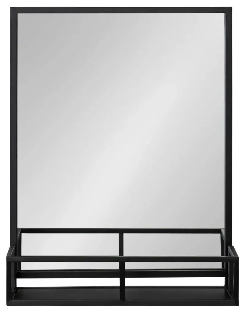 Jackson Metal Framed Mirror With Shelf, Black 22x29