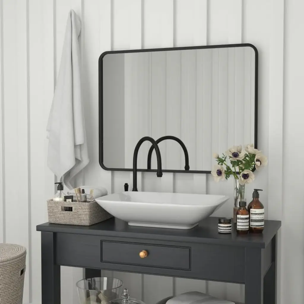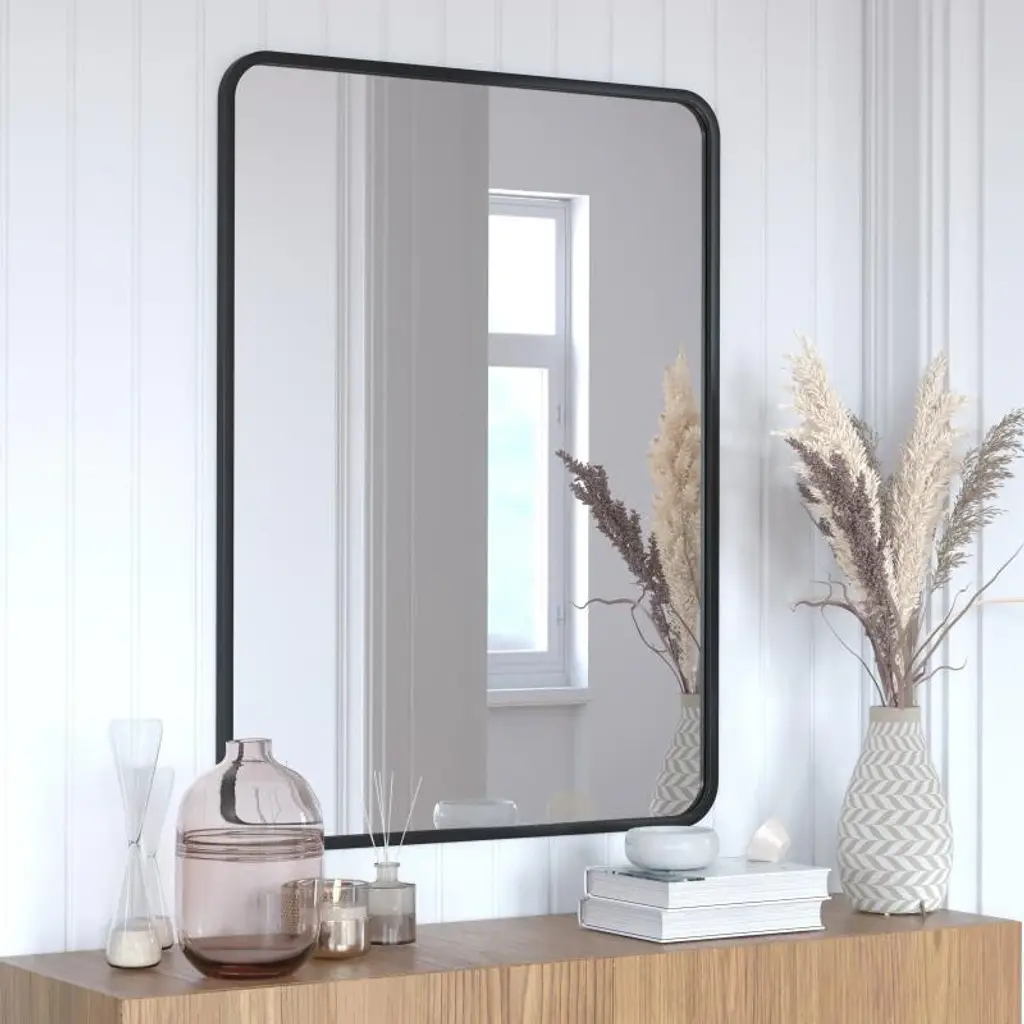 Jada Decorative Wall Mirror With Rounded Corners, Matte Black, 40" X 30"