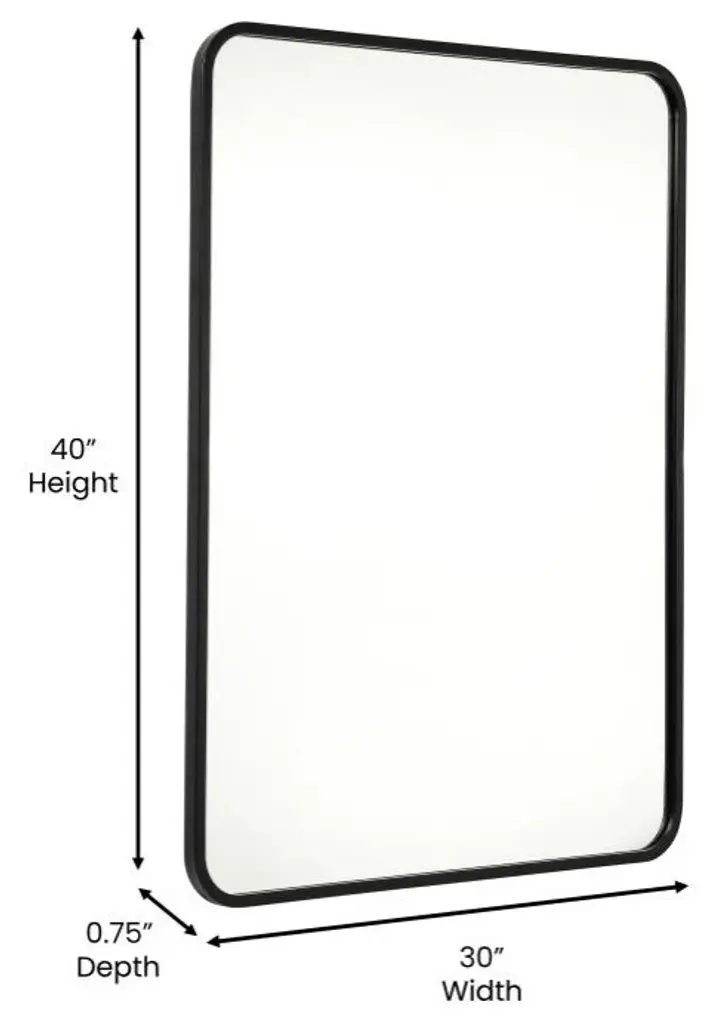• Instantly refresh any room in your home with this 40" x 30" rectangular wall mount mirror. The modern design boasts a slim, matte gold metal frame that lends an up-to-date look to almost any decor. HD glass with real silver backing provides high reflectivity for a distortion-free image. The waterproof and rust-resistant design make this large mirror ideal for use in high humidity areas such as bathrooms, kitchens, and sheltered balconies. Hang this accent mirror vertically or horizontally to suit your personal taste with the included mounting hardware. Wipe clean with a damp cloth to keep your new mirror looking great.• Modern 40" x 30" Rectangular Wall Mount Accent Mirror• Matte Black Metal Frame• Frame Thickness .75"• HD Glass with Real Silver Backing• Includes Hanging Hardware for Vertical or Horizontal Mounting• No Product Assembly Required• Wall mount mirror for use as a vanity, accent, entryway, or bathroom mirror• Single Unit Weight: 31.68 lbs• Item Width: 30 Inches• Item Depth: 0.75 Inches• Item Height: 40 Inches
