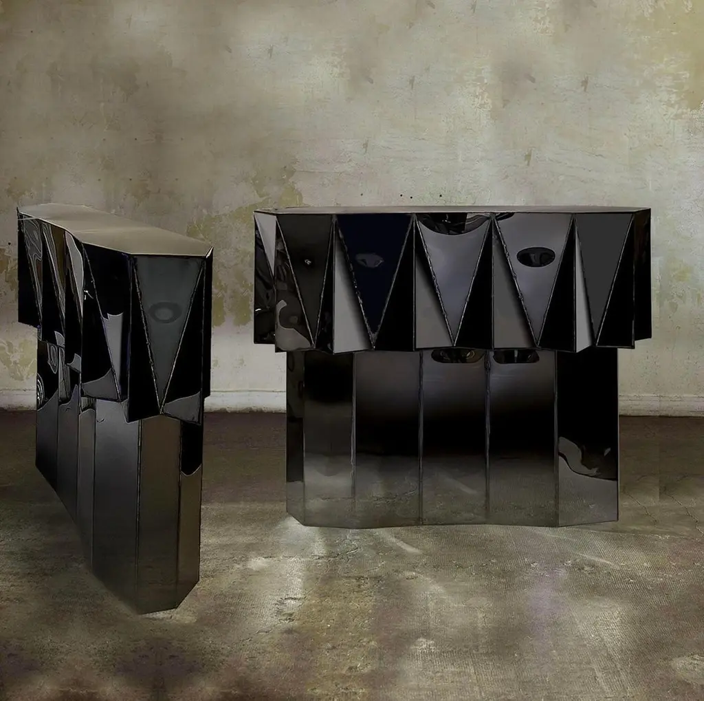 Jagged Edge Console In Welded Mirror-Polished Stainless Steel By Julian Mayor