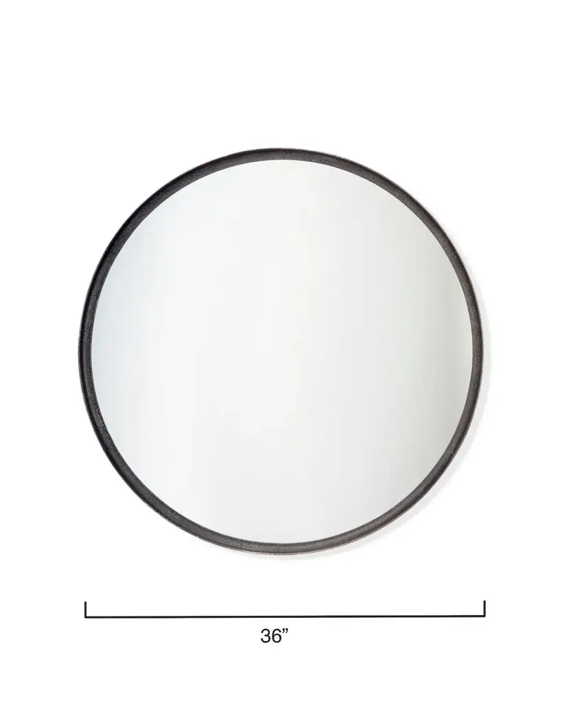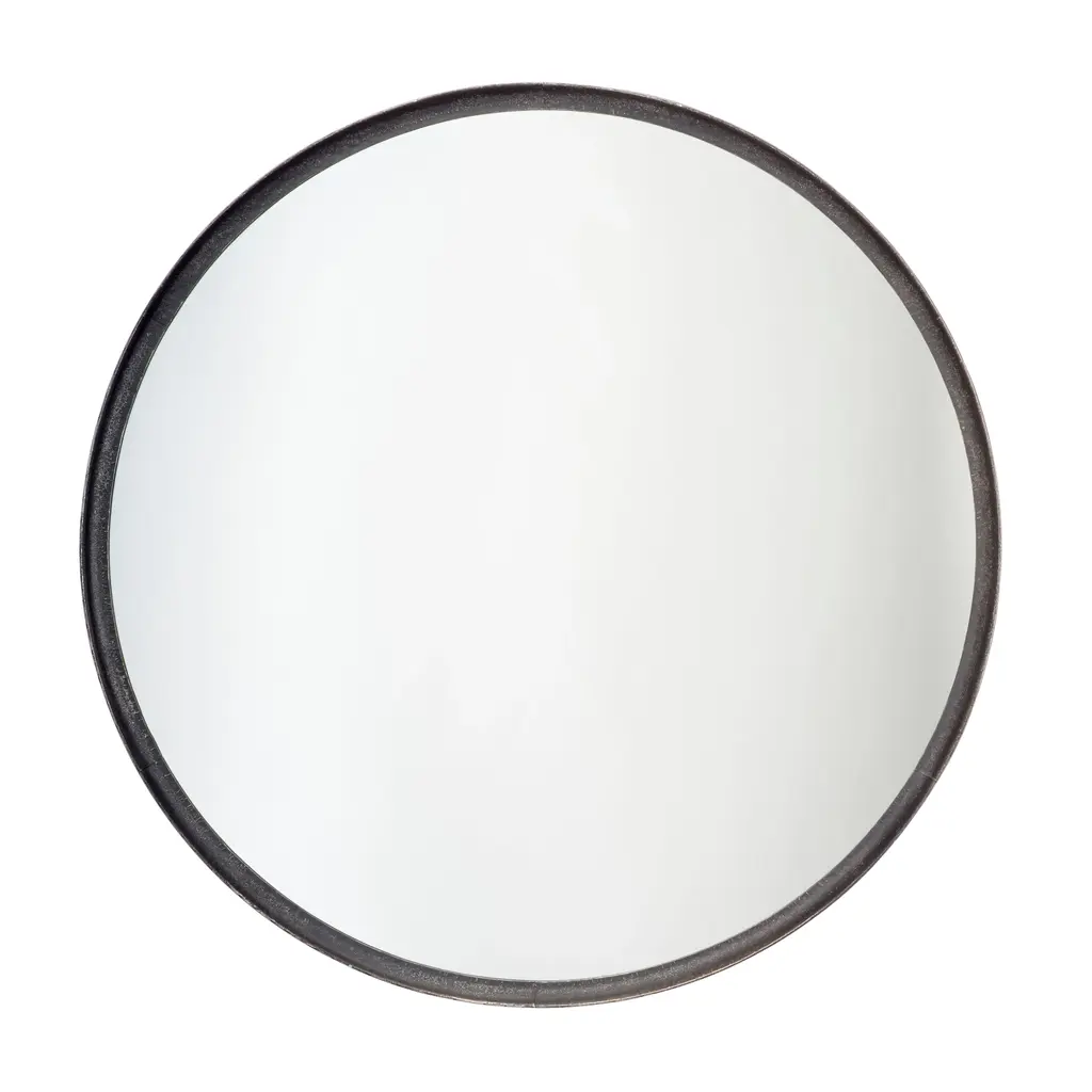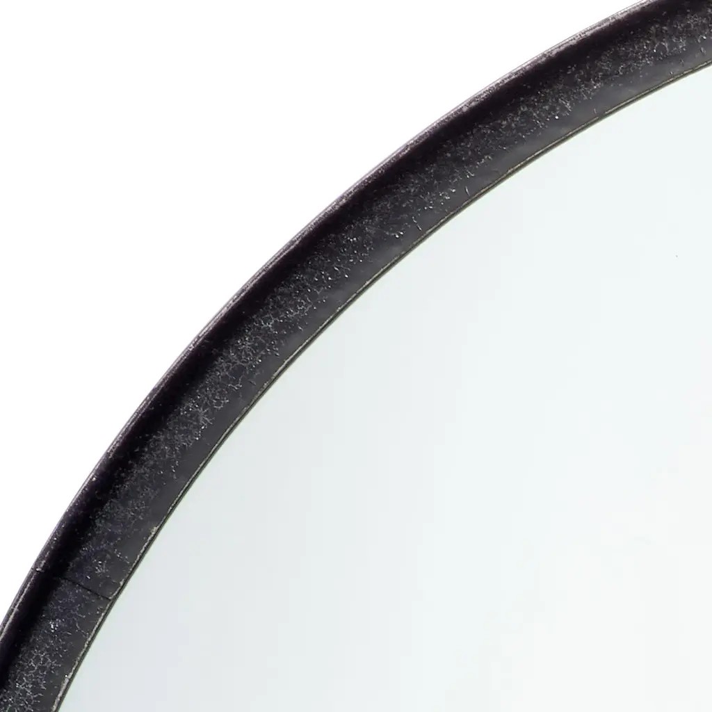 The clean lines of this contemporary wall mirror’s frame are forged of hand-distressed black metal. Featuring gently rounded corners that soften the starkness of the design without distracting and the versatility of hanging horizontally and vertically. Mounted above a vanity, sideboard or dresser, its oval shape will soften any room while reflecting light to make your space feel bigger.