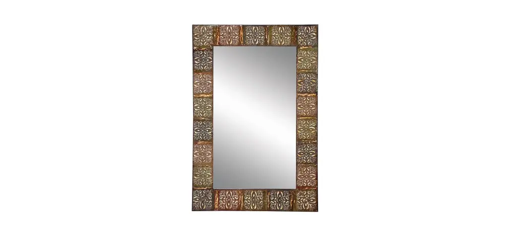 Inspired by world travels, this mirror showcases intricate hand carved flowers and unique geometric patterns. Hang several together for an eye-catching display, or place just one within a gallery wall for a reflective counterpoint.