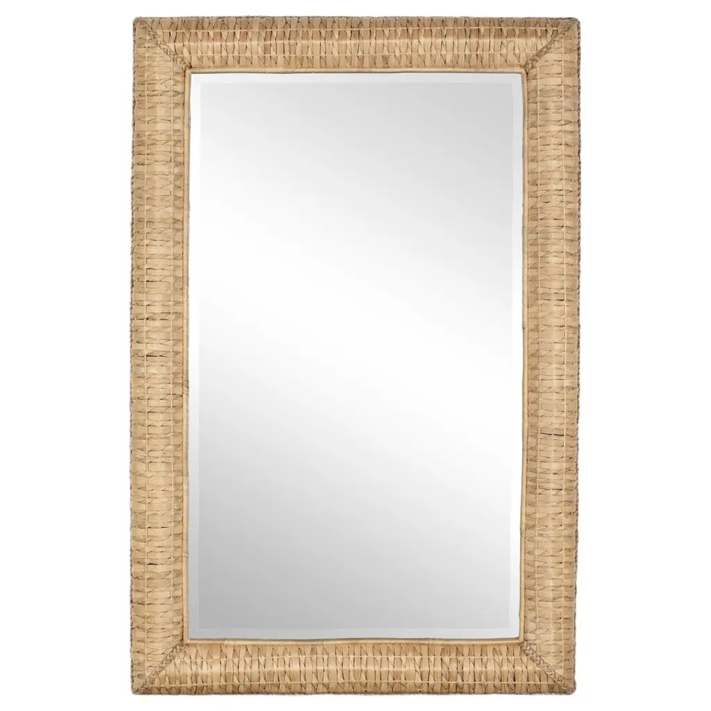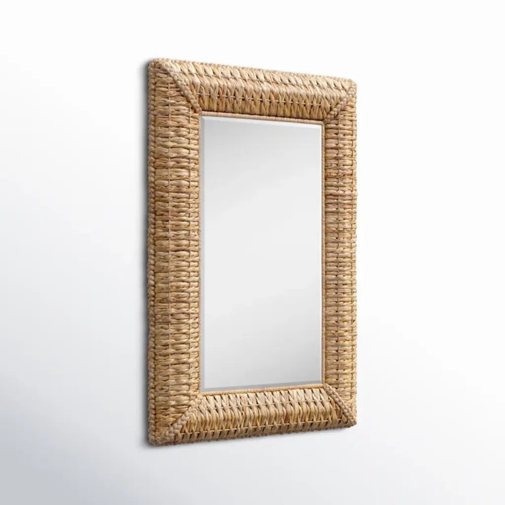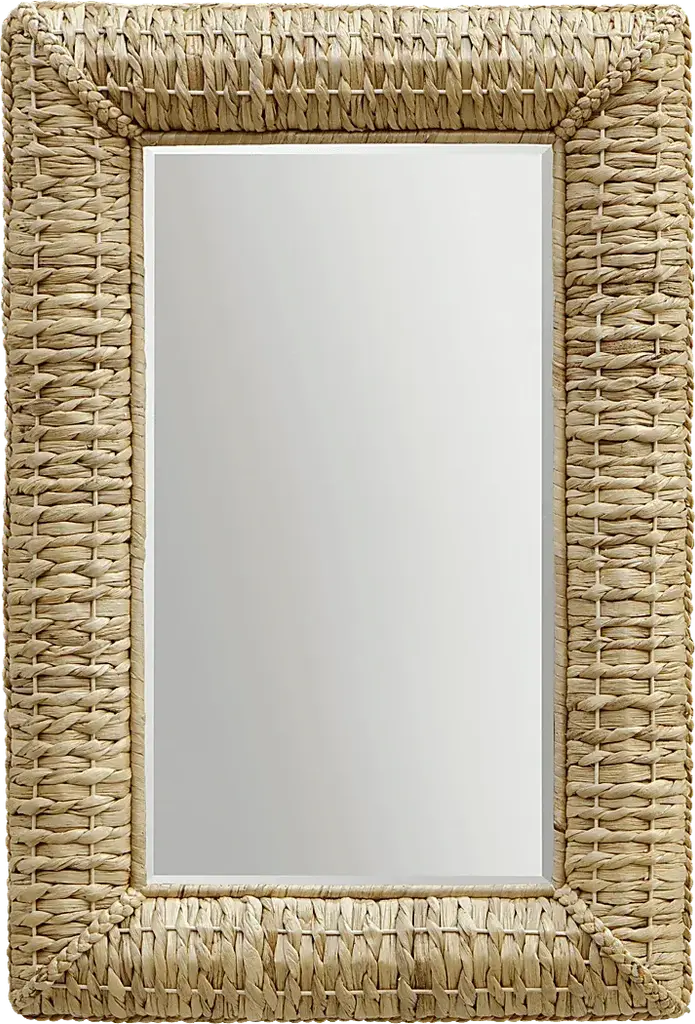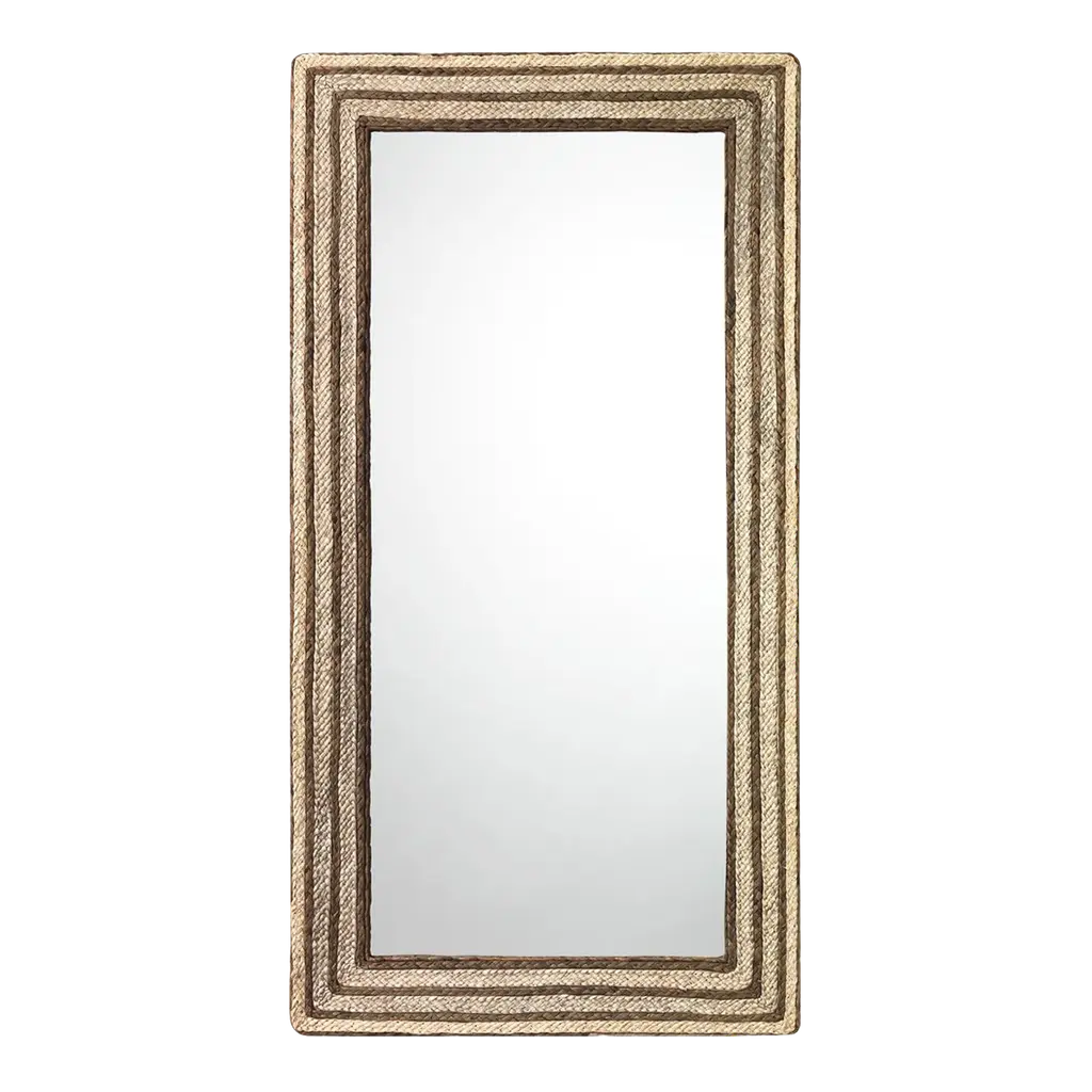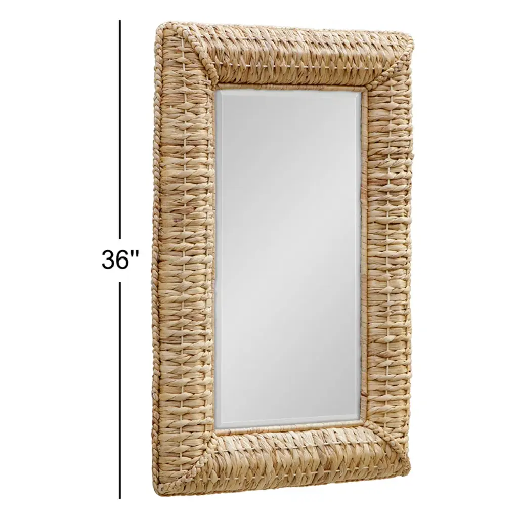 This rectangle mirror has a great coastal vibe by using alternating twisted natural seagrass over a rounded frame accented with matching tightly twisted edge banding.