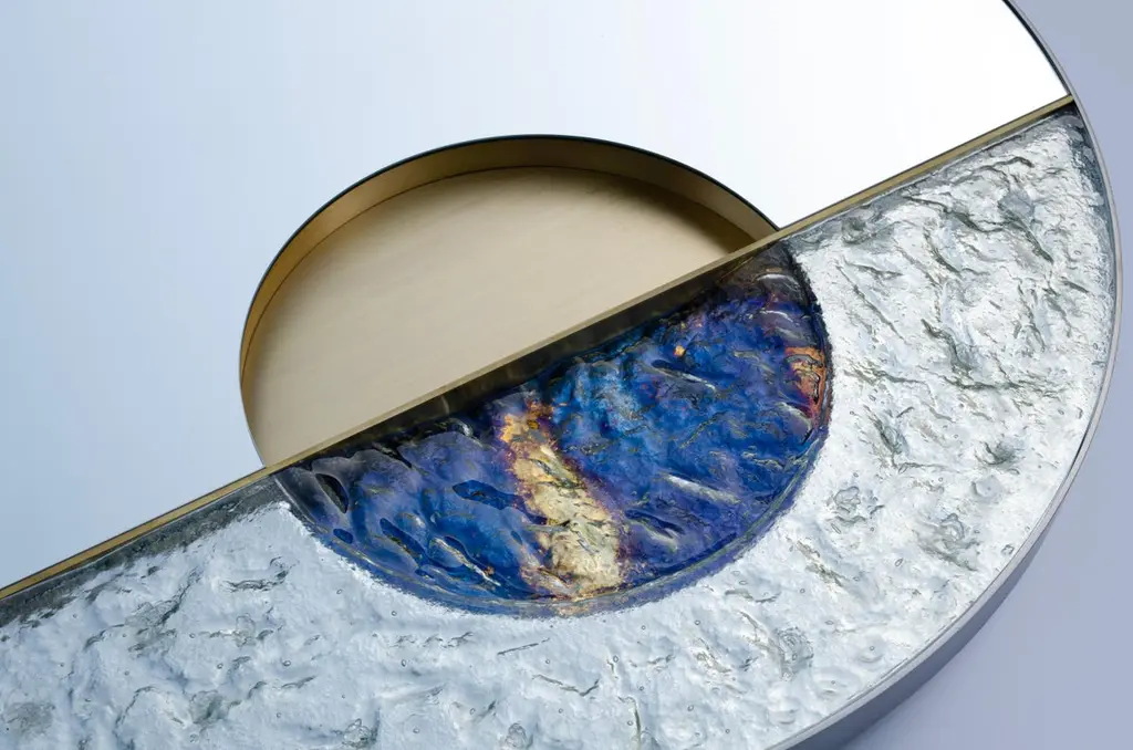 Janus I 100 Wall Mirror by Atlas ProjectDimensions: D 5 x Ø 100 cm. Materials: Brushed steel, mirror, brushed brass, crystal fusing hand-painted, and wood.Available in different sizes. Please contact us.JANUSInspired by the mythological character of the two faces Roman god, Janus by Atlasproject is a sumptuous mirror, that achieves a harmonious synthesis between essentiality and opulence. The cleanness of the metal surfaces and the plasticity of the fused crystal show themselves with vitality and dynamism. Two profiles with different identities meet to express the richness of diversity.Our ProjectThe synergy between a thirty-year Italian craft experience and an original design, based on the need to research and develop topics up with the new aesthetic trends, gives birth to Atlasproject, an exclusive furniture collection conceived by the designer Massimiliano Giordano.Born and developed first in Copenhagen, then in Vienna and finally in Rome, the project is – as a matter of fact - a journey of contamination and encounter between the many cultures of the European Design.The production is focused on a dynamic dialogue between geometries and materials, which leads to collections of deep impact and elegance. Every piece merges essential geometric shapes with the most surprising materials, textures, and colors, as the result of a careful selection of natural materials and hand-processed metals.The Atlasproject collections are entirely made in Italy, where the tradition of artisanality is still a deep value, to ensure high-quality and long-life products.Of Neapolitan origins, Massimiliano Giordano grew up inthe family’s artistic atelier.The artisan knowledge and the design skills lead him to Atlasproject, a creative container inspired by the journey, leit motiv of his personal and professional life. In fact, the designer leaves from Naples towards Copenhagen, where he will stay for five years, and then for Vienna for five years more in the heart of the Mitteleuropean design, and finally in Rome, where he currently lives and works.The amazing connections between the encountered design souls actually represent the most significant stylistic figure of his works.