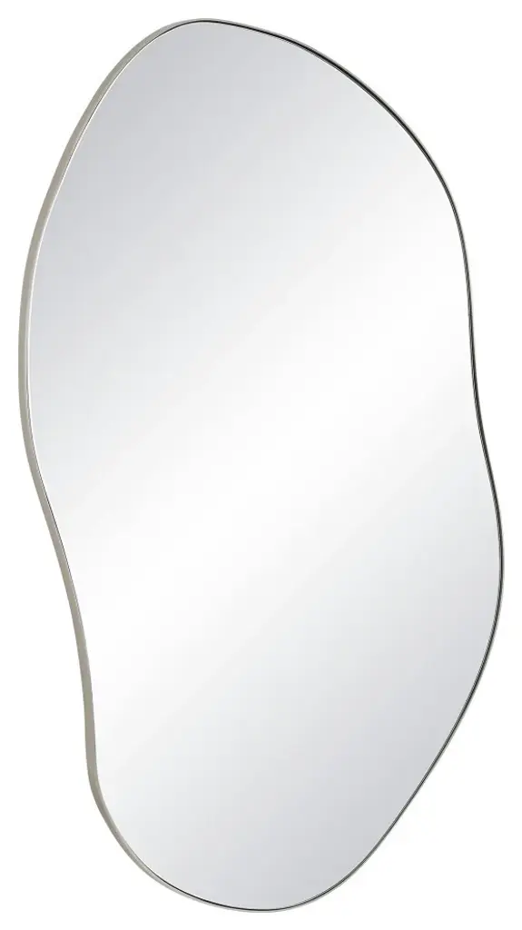 Step away from straight lines and try something new with the Javelin mirror. It features a curvy organic form and a sleek brushed satin nickel-plated frame to bring a light and airy feel to any room. Crystal clear mirror glass ensures a distortion-free reflection you can only get with high-quality mirrors. Measuring nearly 4 feet long, it makes for a great alternative to a standard full length mirror when hung vertically and would also look beautiful displayed horizontally as a focal point over a fireplace, sofa or dresser. The choice is up to you thanks to a 4-way hanging D-ring system that lets you hang it to suit your needs.