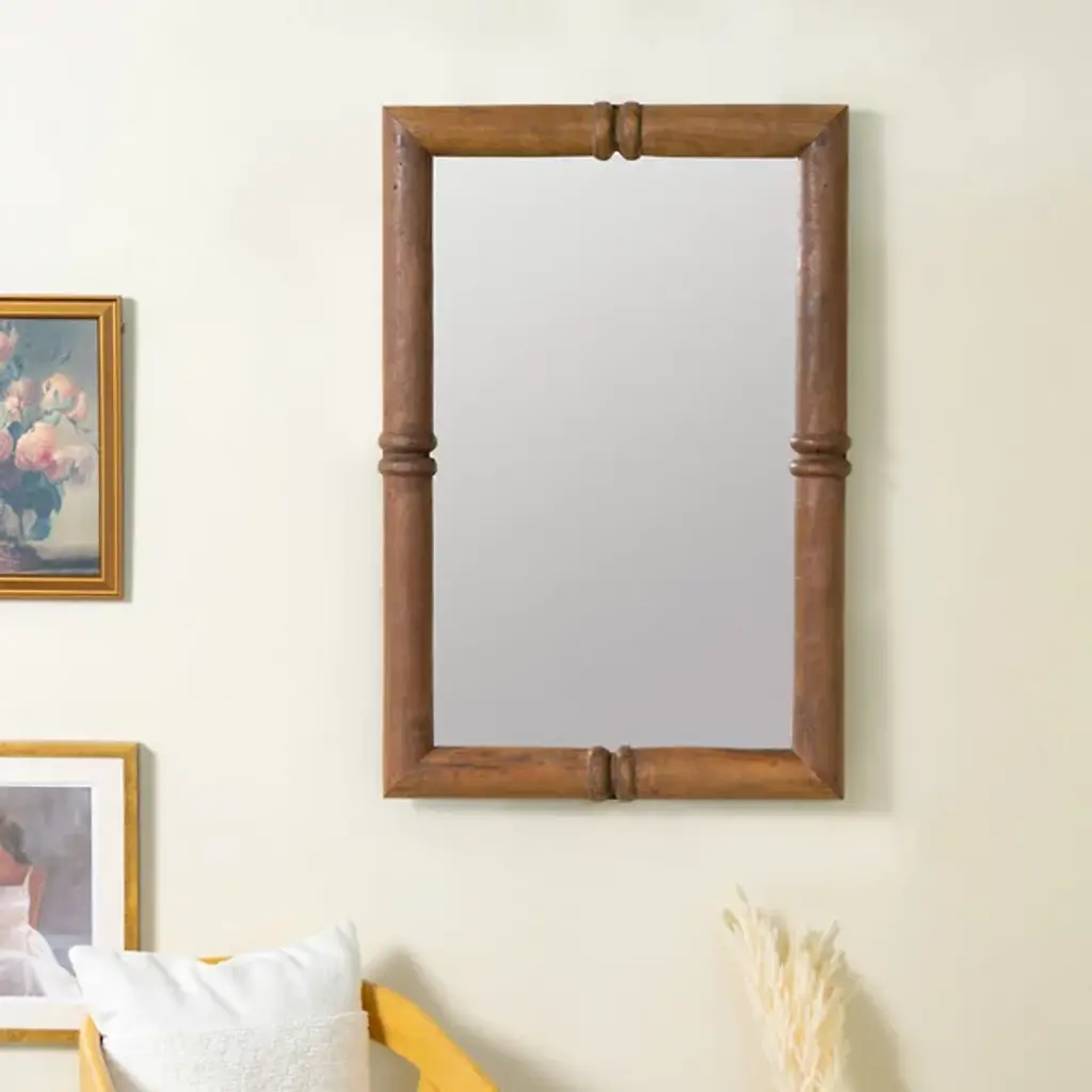 The Jeanne Wall Mirror from Cooper Classics pays homage to traditional woodworking techniques. Double-ringed joints punctuate the frame, creating a measured cadence around the perimeter. The substantial wooden construction offers mounting flexibility - hang it horizontally above consoles or vertically in dressing areas. Each joint and detail shows deliberate craftsmanship, from the depth of the carved elements to the balanced proportions. The design brings architectural interest to walls while maintaining honest material expression.