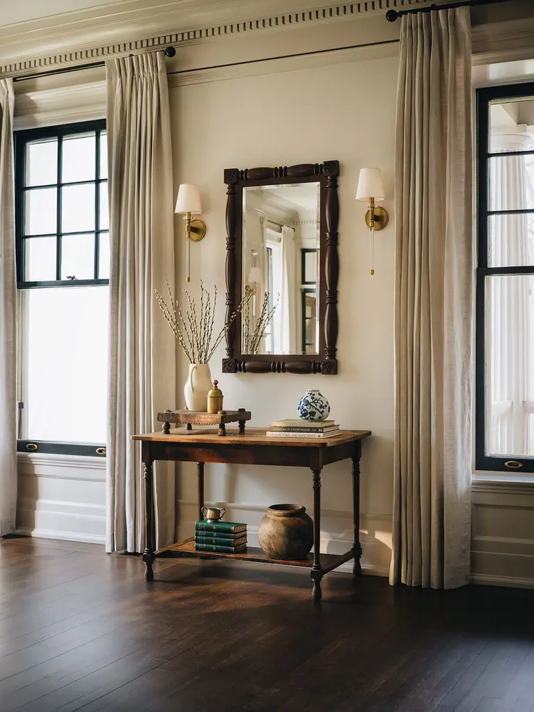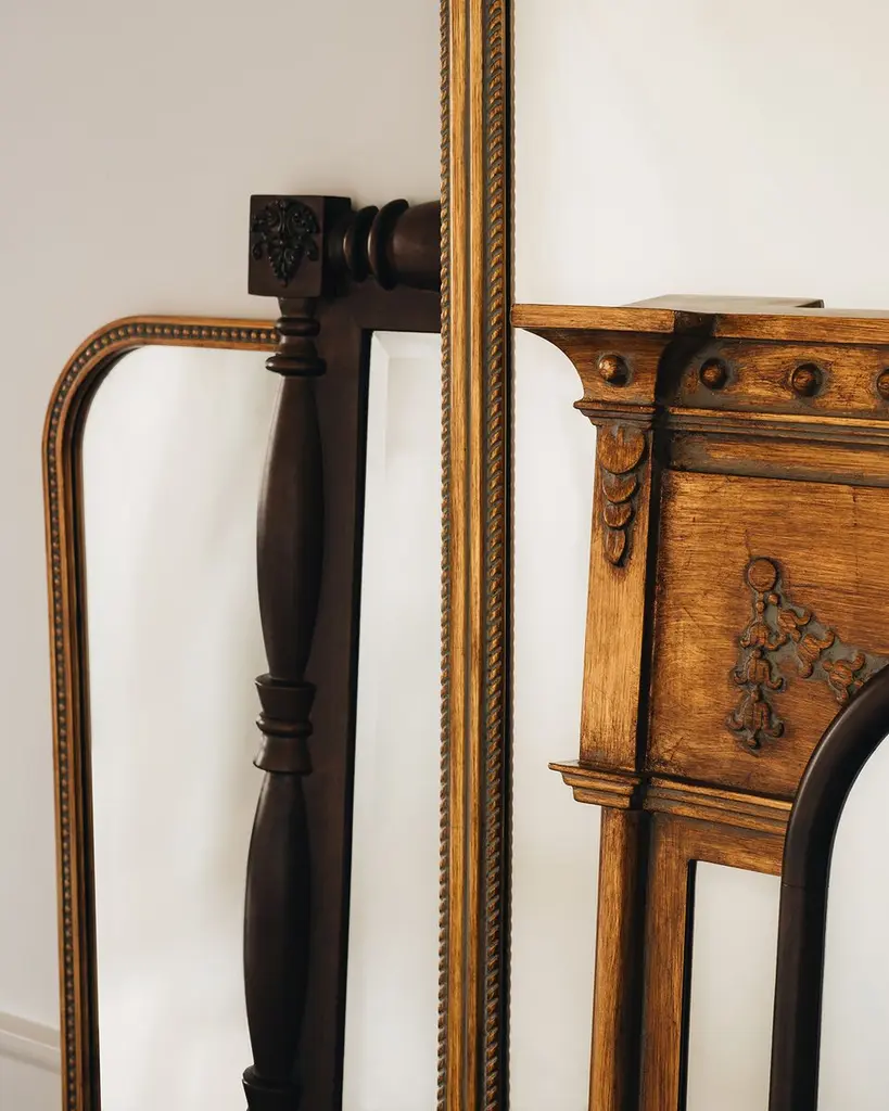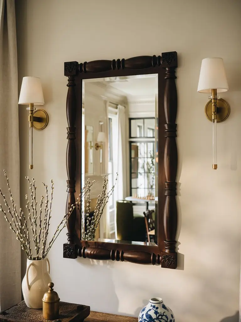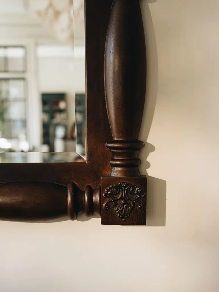 The Jefferson mirror features a unique and timeless shape, with turned sides and square corners accented by an ornamental applique. Jean was especially drawn to its distinctive edges and balanced proportions. It's the perfect size to hang above a console or dresser. This vintage-inspired piece is part of a thoughtfully designed line inspired by mirrors from Jean’s personal vintage collection. A timeless silhouette rooted in tradition, the Jefferson Mirror feels at once grand and grounded.