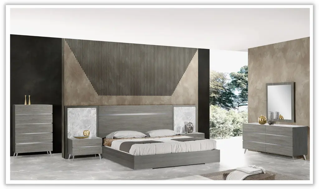 Elevate your bedroom with the Victoria Premium Mirror from Jennifer Furniture's modern bedroom collection. This mirror beautifully combines a sophisticated wenge veneer finish with elegant gold accents. Its distinctive fractured gray and brown marble look adds a touch of uniqueness to your space. The Victoria Mirror is not just a reflection but a statement piece that complements contemporary aesthetics. Upgrade your bedroom decor with this stylish and refined mirror today.