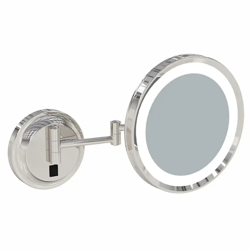 The Jerdon HL65C 8-Inch Two-Sided Swivel Halo Lighted Wall Mount Mirror is used in luxury hotels and day spas because of its convenience, sleek look, lighting and magnification. This fog free, two-sided circular mirror has an 8-inch diameter and features a smooth 360-degree swivel design that provides 1x and 5x magnification options to make sure every detail of your hair and makeup are in place. The halo light design around the perimeter of the mirror and smooth rotation adjust to all angles for a dynamic point of view. This item can use the JPT25W replacement bulb (sold separately). An on/off rotary knob on the oval base will activate the halo lighting when you need it. The HL65C has a mounting bracket that measures 4-inches by 5-inches and extends 14-inches from the wall and can be easily moved around, while still being firm enough to hold for odd angles. This mirror has an attractive chrome finish that protects against moisture and condensation and is designed to be wall mounted. This item comes complete with mounting hardware. The Jerdon HL65C 8-Inch Two-Sided Swivel Halo Lighted Wall Mount Mirror comes with a 1-year limited warranty that protects against any defects due to faulty material or workmanship. The Jerdon Style company has earned a reputation for excellence in the beauty industry with its broad range of quality cosmetic mirrors (including vanity, lighted and wall mount mirrors), hair dryers and other styling appliances. Since 1977, the Jerdon brand has been a leading provider to the finest homes, hotels, resorts, cruise ships and spas worldwide. The company continues to build its position in the market by both improving its existing line with the latest technology, developing new products and expanding its offerings to meet the growing needs of its customers.