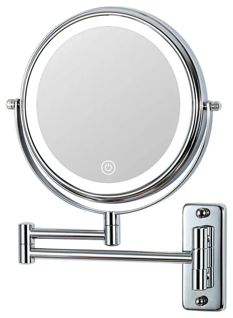 The Jerdon HL88NL 8.5-Inch Two-Sided Swivel LED Lighted Wall Mount Mirror is used in luxury hotels and day spas because of its convenience, sleek look, lighting and magnification. This two-sided circular mirror has an 8.5-inch diameter and features a smooth swivel design that provides 1x and 8x magnification options to make sure every detail of your hair and makeup are in place. The LED halo light design around the perimeter of the mirror and smooth rotation adjust to all angles for a dynamic point of view. An on/off rotary knob on the oval base will activate the lighting when you need it. The HL88NL extends 13.5-inches from the wall and can be easily moved around, while still being firm enough to hold for odd angles. This mirror has an attractive nickel finish that protects against moisture and condensation and is designed to be wall mounted. This item comes complete with mounting hardware. The Jerdon HL88NL 8.5-Inch Two-Sided Swivel LED Lighted Wall Mount Mirror comes with a 1-year limited warranty that protects against any defects due to faulty material or workmanship. The Jerdon Style company has earned a reputation for excellence in the beauty industry with its broad range of quality cosmetic mirrors (including vanity, lighted and wall mount mirrors), hair dryers and other styling appliances. Since 1977, the Jerdon brand has been a leading provider to the finest homes, hotels, resorts, cruise ships and spas worldwide. The company continues to build its position in the market by both improving its existing line with the latest technology, developing new products and expanding its offerings to meet the growing needs of its customers.
