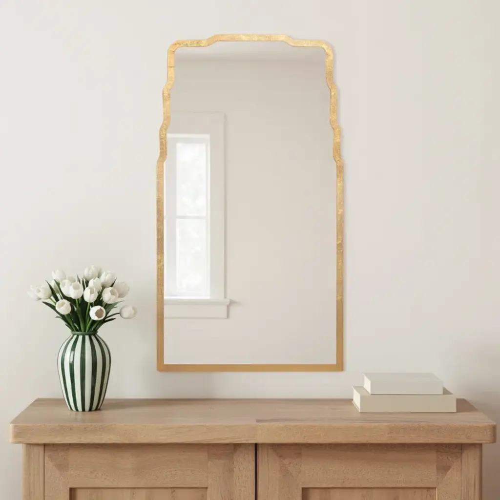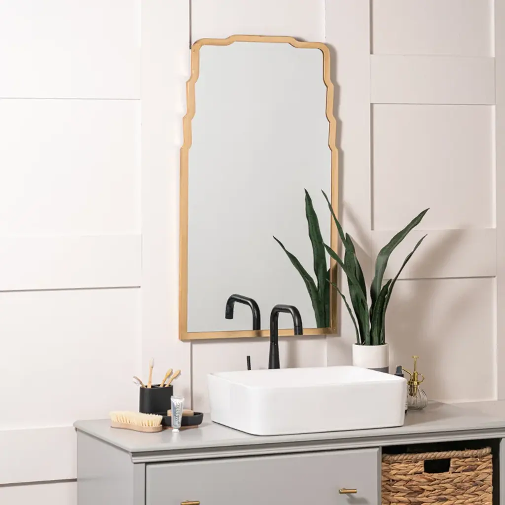 This wall accent mirror has a slightly arched silhouette and high-quality glass center that's sure to bounce around natural light throughout your space. Its frame is made from metal and comes in the finish of your choice, so you can make it your own. It measures 36" tall and has a vertical orientation, making it right at home above a bathroom vanity or on that shiplap wall in your master suite.