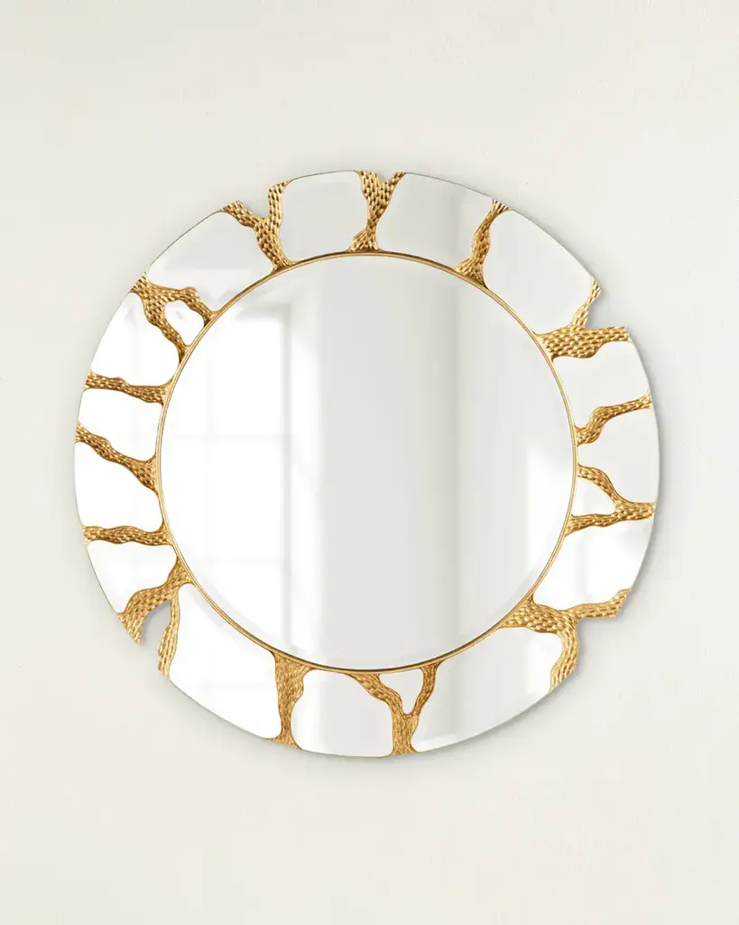 The shatter mirror is an exciting statement piece that contributes opulent tones and dimensional depth to any space. A pristine frame features beveled mirrored glass with a shattered motif, accented with a gorgeous gold coast finish that peeks out from beneath the cracks. A circular, beveled mirror in the center completes the look. Handcrafted of mirror, beech wood, and MDF French cleats hanger Includes hanging hardware This mirror is designed for portrait or landscape orientation Overall: 48.3"W x 2.25"D x 48.3"T Wipe clean Imported Weight, 75.0lbs Boxed weight, approximately 137.5lbs Proposition 65 warning for California residents Backed by a limited manufacturer’s warranty. ( Click here for warranty information ) Proposition 65 warning for California residents Shipping Direct from Vendor, usually ships within 30 business days. Backed by a limited manufacturer’s warranty. ( Click here for warranty information ) About the John-Richard Collection Founded in 1980 in Greenwood, Mississippi, the John-Richard Collection is known for a strong design staff that travels the world for inspiration. Channeling cultural and historical influences, the company creates distinctive artisan-crafted furniture, lighting, wall art, mirrors, and decorative accessories that make a lasting impression. What's more, an eye for future trends in luxury home furnishing sets the John-Richard Collection apart. They skillfully blend the best of what is new in home fashion with the great designs of the past, resulting in updated designs that fit perfectly with an array of styles.