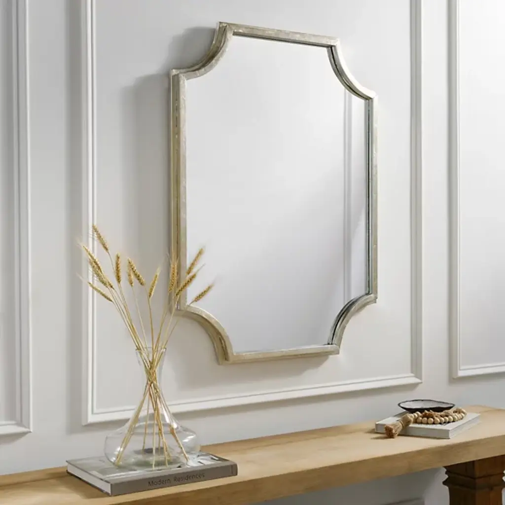 The Joslyn Mirror from Surya reimagines traditional design for the contemporary home. Its manufactured wood frame, adorned with a lustrous gilded finish, exudes an air of refined luxury. This specialty-shaped mirror defies convention, offering a fresh perspective on classic aesthetics. Whether gracing an entryway or anchoring a living space, the Joslyn Mirror serves as a functional accent. Its adaptable orientation invites creative placement, allowing you to curate your space with intention and style.