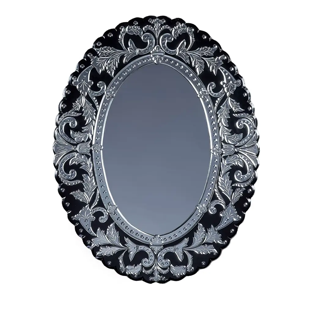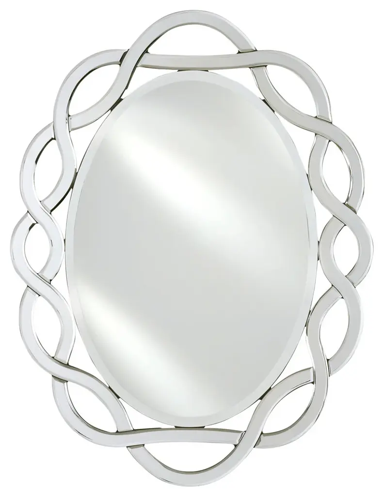 Sleek and geometric, this modern clear mirror is ideal for an entryway or at the end of a long hallway. The circular silhouette brings a contemporary feel, while the inner bit has intricate layers of mirrored glass, opening space and creating extra dimension.