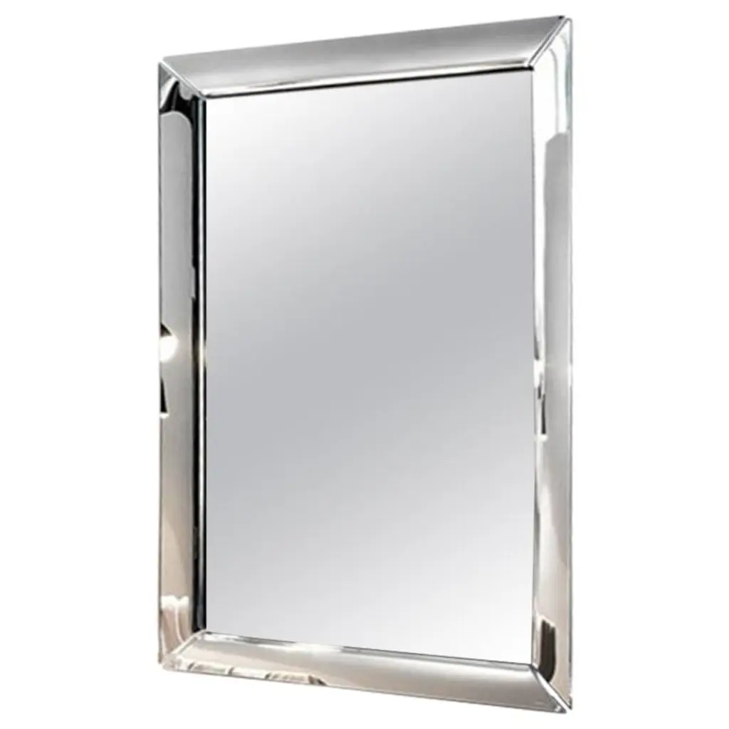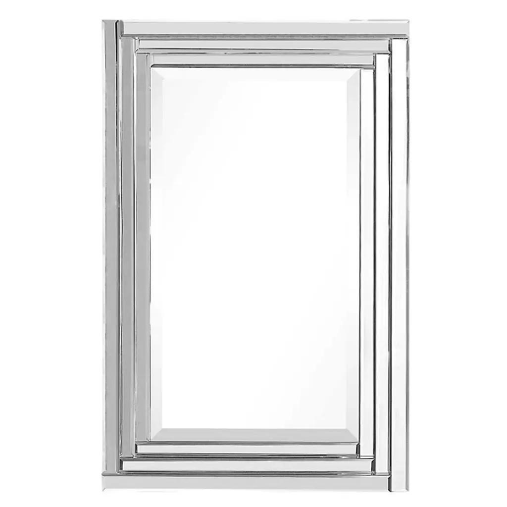 This mirror features a three-tiered "step" frame, all in beveled glass, for a sleek, contemporary look that will add brilliance to your wall.
