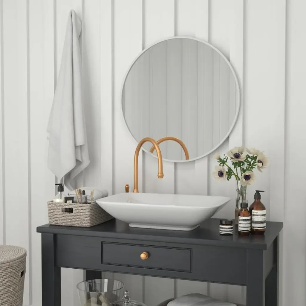 Julianne Round Metal Framed Wall Mirror, Silver, 30"