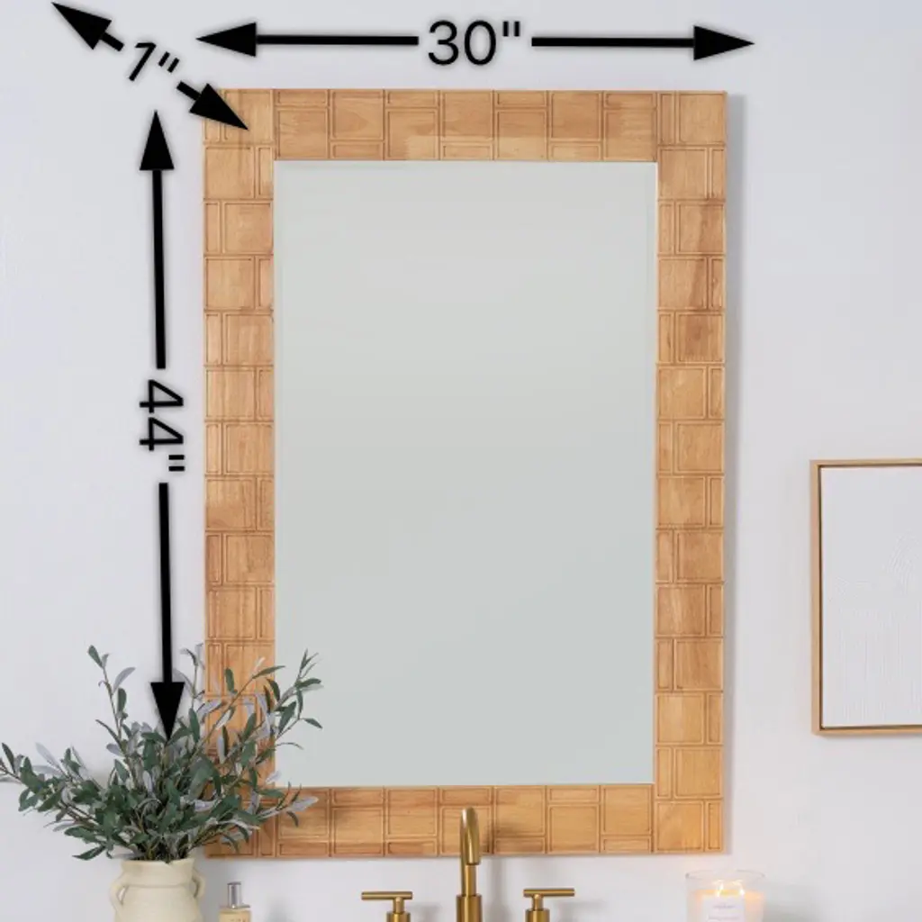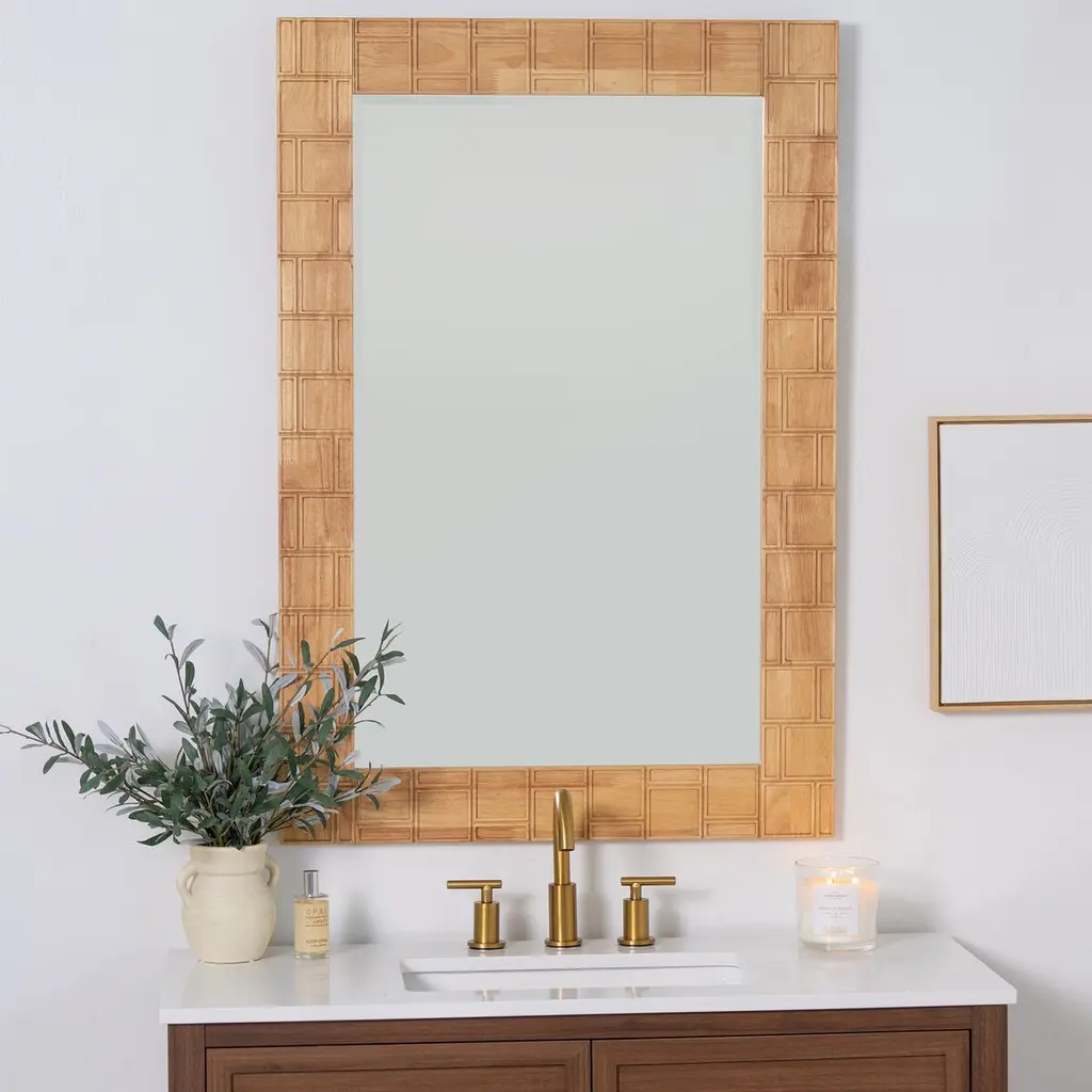 Juniper Carved Wood Rectangular Wall Mirror, Natural