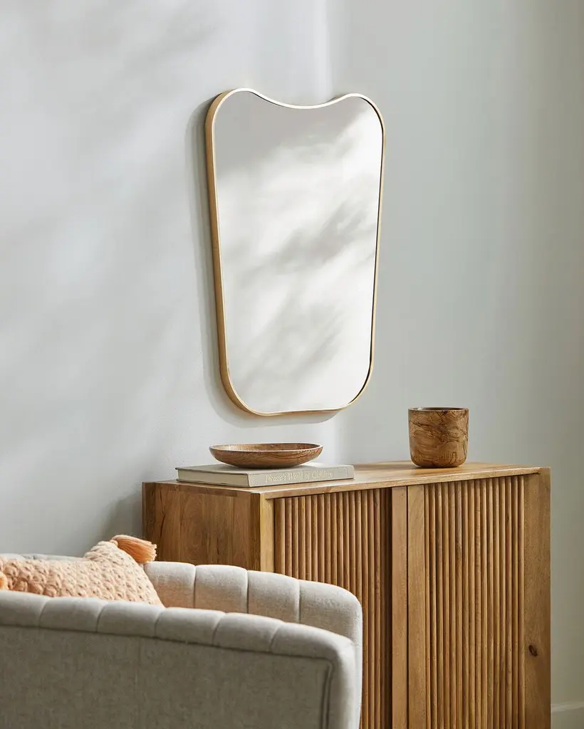 Experience a touch of minimalist modern charm with the wall mirror. This exquisite piece is not just a functional item, but also an artistic decor element that adds depth and dimension to any space. Its clean lines and sleek design reflect a sophisticated contemporary aesthetic, making it an ideal addition to your home or office. For longevity and maintenance, all you need to do is simply wipe it with a dry cloth to keep its sparkling appearance intact. However, remember to steer clear of abrasive cleaners that might harm the immaculate finish.
