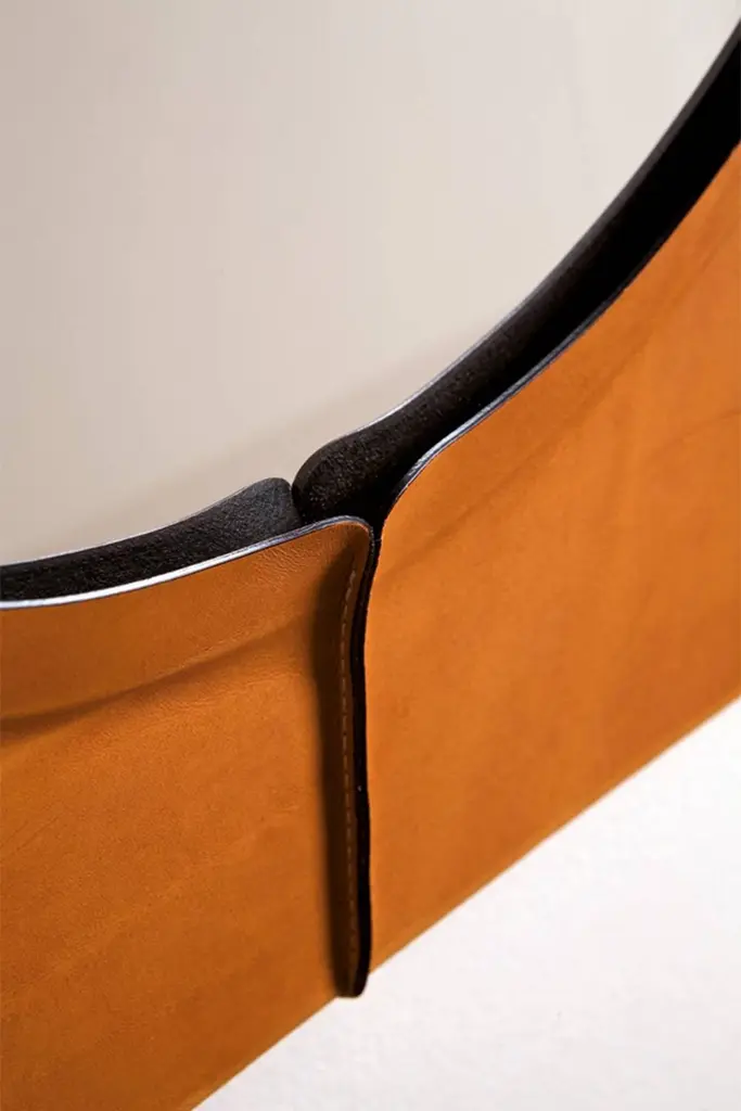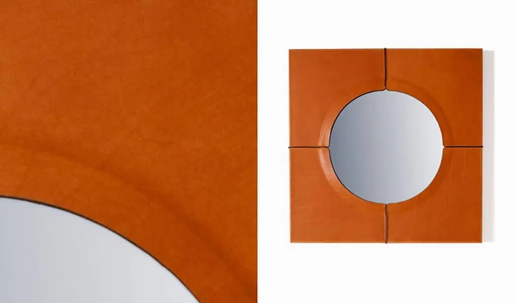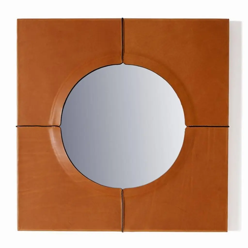 "Just Another Day" is a mirror, designed by Nestor Perkal and manufactured by Oscar Maschera. It's shaped by the mirror itself which makes the leather taut. Sewn and assembled, leather takes shape and becomes a carapace. Leather colors available: tan, sienna, orange, red, red-purple, dark brown, khaki, blue, black.DIMENSIONS:D. 23.6", W. 23.6", H. 1.4""Mirrors should reflect a little before throwing back images." Jean Cocteau, Le sang d'un poète (1930)Nestor Perkal said about "Just Another Day":"This object has always fascinated me. Is it there simply to reflect our image or is it looking at us? It envelopes us, searches for us, constantly questions us. At Oscar Maschera I looked for what leather could bring to this object and how it could become its supporting structure." NESTOR PERKAL, born in Buenos Aires, lives and works in Paris. Though he trained as an architect, his work has always been oriented to design and interior architecture. In 1985, he founded an international design gallery in Paris, l’Espace Nestor Perkal, where he was among the first in Europe to show and sell pieces from the “New International Design” movement: Memphis Milano, Mariscal and many others.From 1987-1994, he was the artistic director of the goldsmith’s company Algorithme, where he invited many designers to work on edition projects that were highly successful in France and abroad. As a designer, he has collaborated with Drimmer, Lou Fagotin, Artcodif, Veronese, etc. At CIRVA (International Research Centre on Glass and Plastic Arts), he created the Miroirs collection in 1994-1996.As an interior architect, he has furnished the “café” of the Maison Européenne de la Photographie in Paris, different areas for Cartier and the Cartier Foundation for Contemporary Art, as well as many private apartments and houses. He has been the curator and scenographer of exhibitions held at the Cartier Foundation (La vie en Roses, 1998), at the Galerie Chez Valentin, Paris (“chez Valentin 2000”), at the Passage de Retz (Paris, 2000), at the Museum of Contemporary Art of Rochechouart and at the Grand Hornu in Belgium for the exhibition Désirs d’Objets (2003-2004) and at the Museum des Arts Décoratifs, Paris for the exhibition Editer le design (2006) and 100% Finlandia (2008).He has been the director of the Research Centre on the Arts of Fire and Earth (CRAFT) of Limoges (1993 – 2009), developing strong and lively projects aimed at creating an experimental and artistic connection between industrialists and designers, architects and artists.