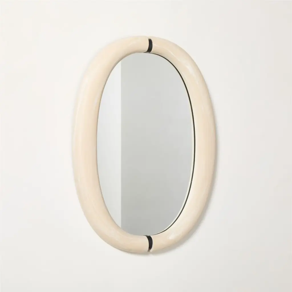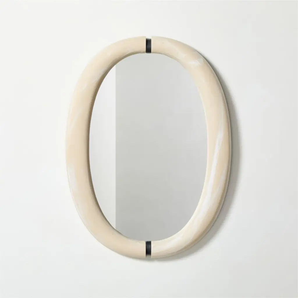 Kaboshon White Swirled Resin Oval Wall Mirror 24"x32"